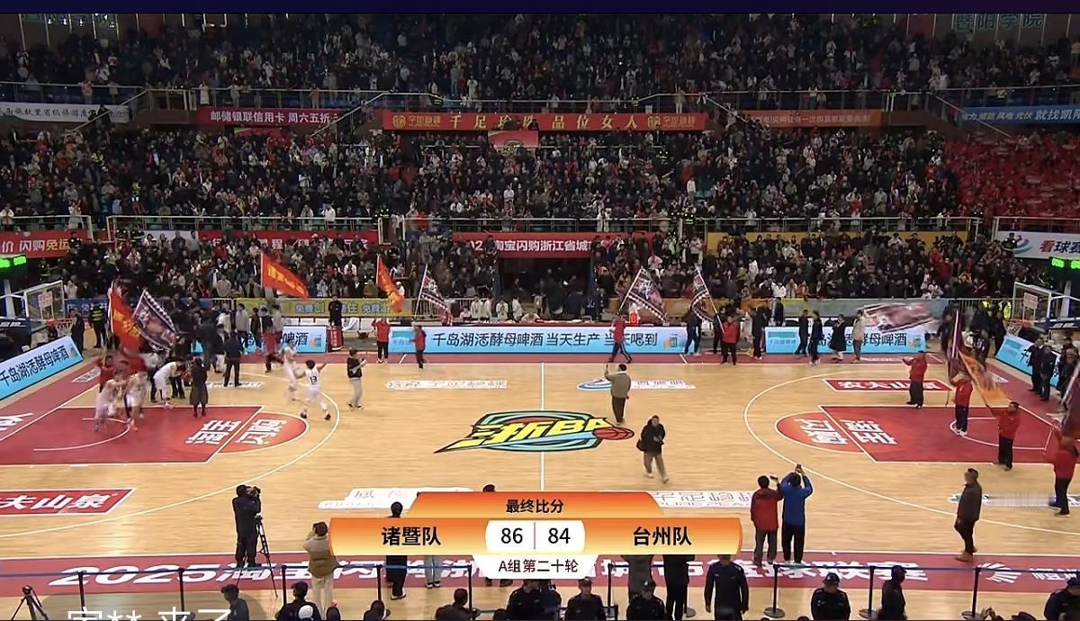 诸暨队进入8强,小组赛出线!今晚的浙BA台州队VS诸暨队,可谓十分的精彩。上半场诸暨队比分一直领先台州队,直至进入下半场。 直到第三节台州队奋起反击,以52:52追平比分。然后又被诸暨队继续领先比分。比赛来到第四场,诸暨队一度领先台州队9分。 到了3分45秒的时候,在台州队的再次反击下,以72:72追平比分。最后在第四节还剩1分27秒的时候,双方打至77:77,直至比赛结束,双方都没能再得分。 最终以77:77进入加时赛。进入加时赛后,到剩余56秒的时候,诸暨队以86:81领先台州队5分。直到比赛结束,诸暨队以86:84赢得比赛。 最终诸暨队以13胜6负的成绩,进入8强,宣告小组赛出线。那么接下来,台州队和金华队,均是11胜7负的成绩。两队究竟谁能小组赛出线,就看后续两队最关键的比赛了。