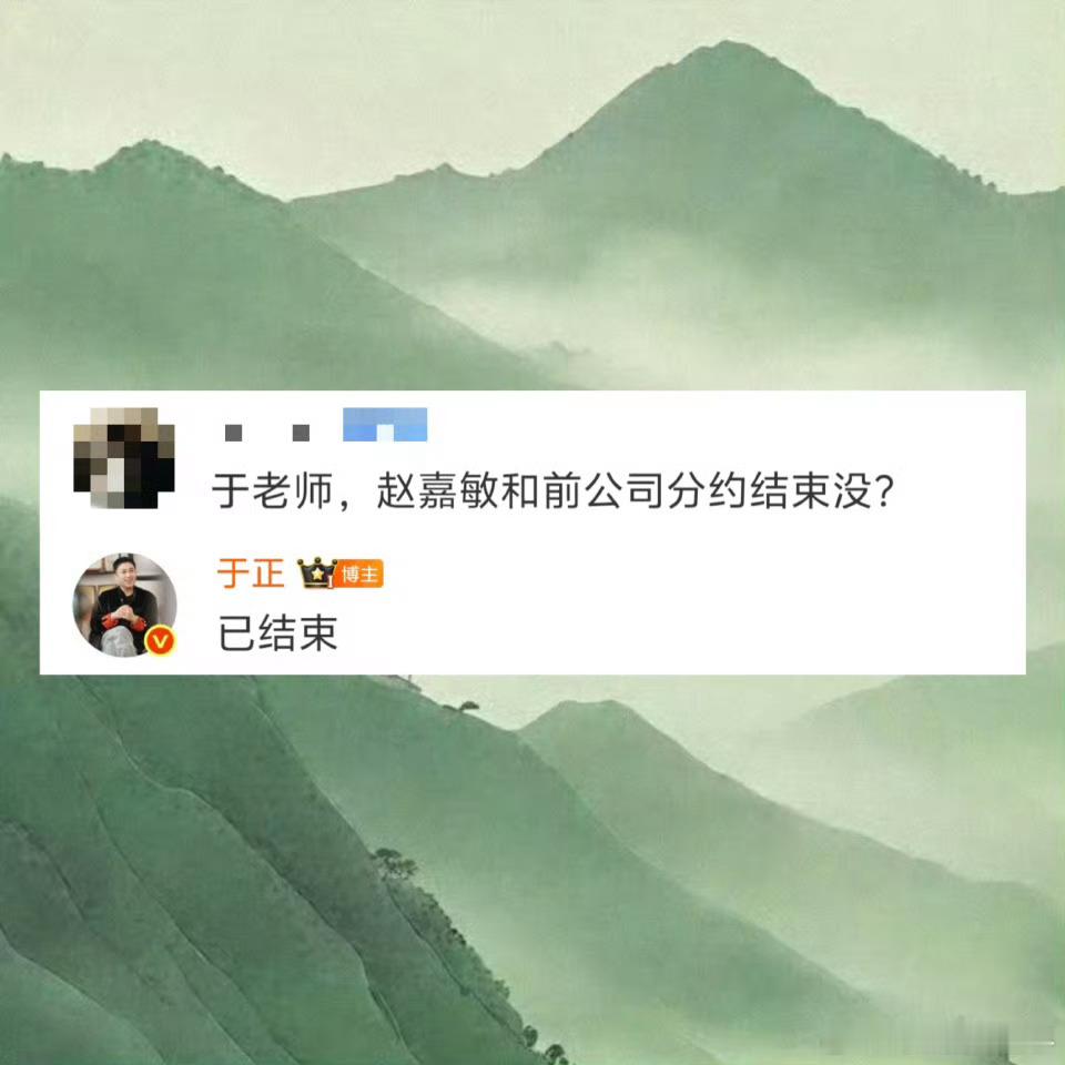 于正说赵嘉敏丝芭合约结束 赵嘉敏终于和前司和平分手了!恭喜!期待之后的作品,在于正手下应该还是可以有挺多戏拍的。