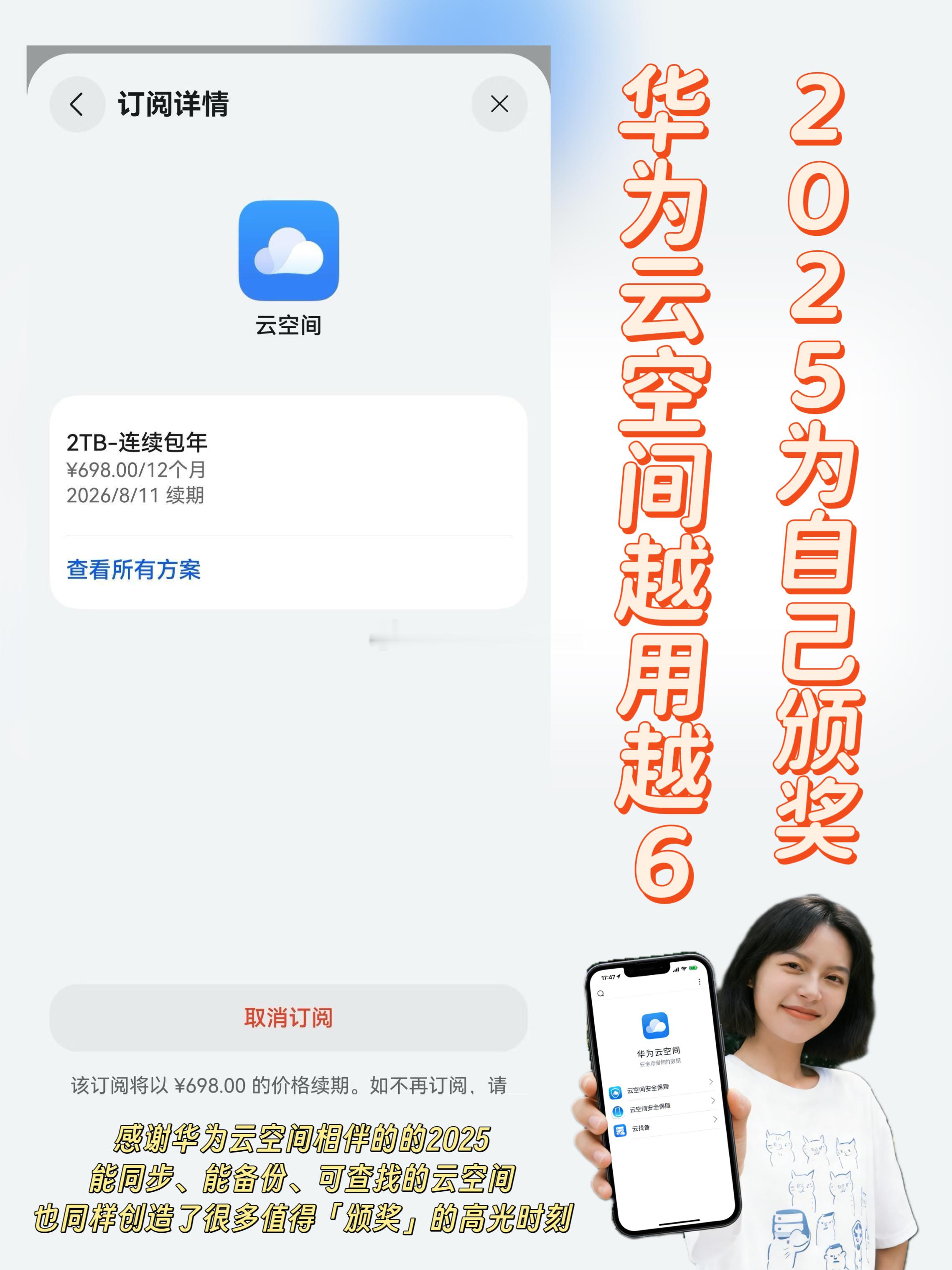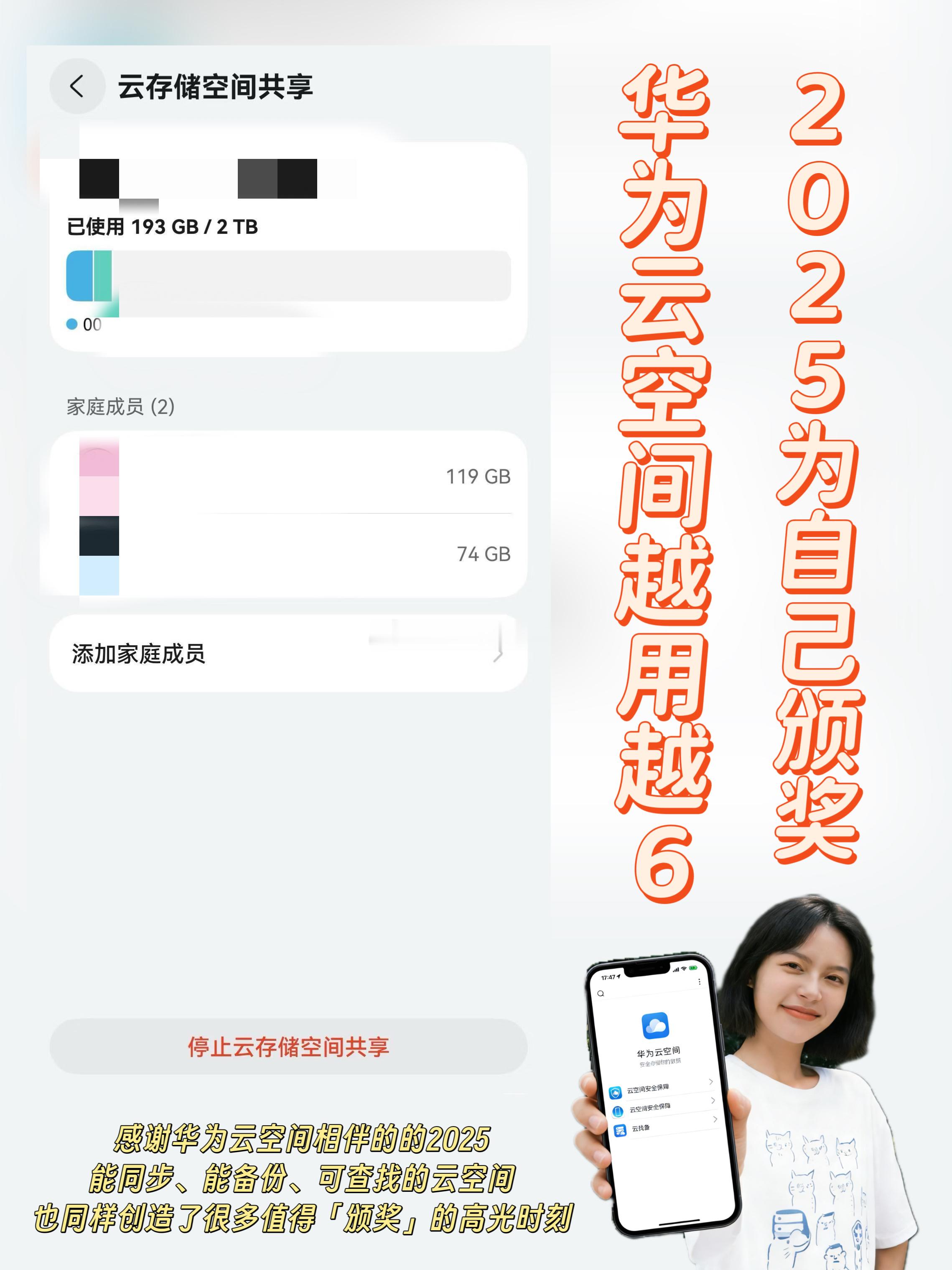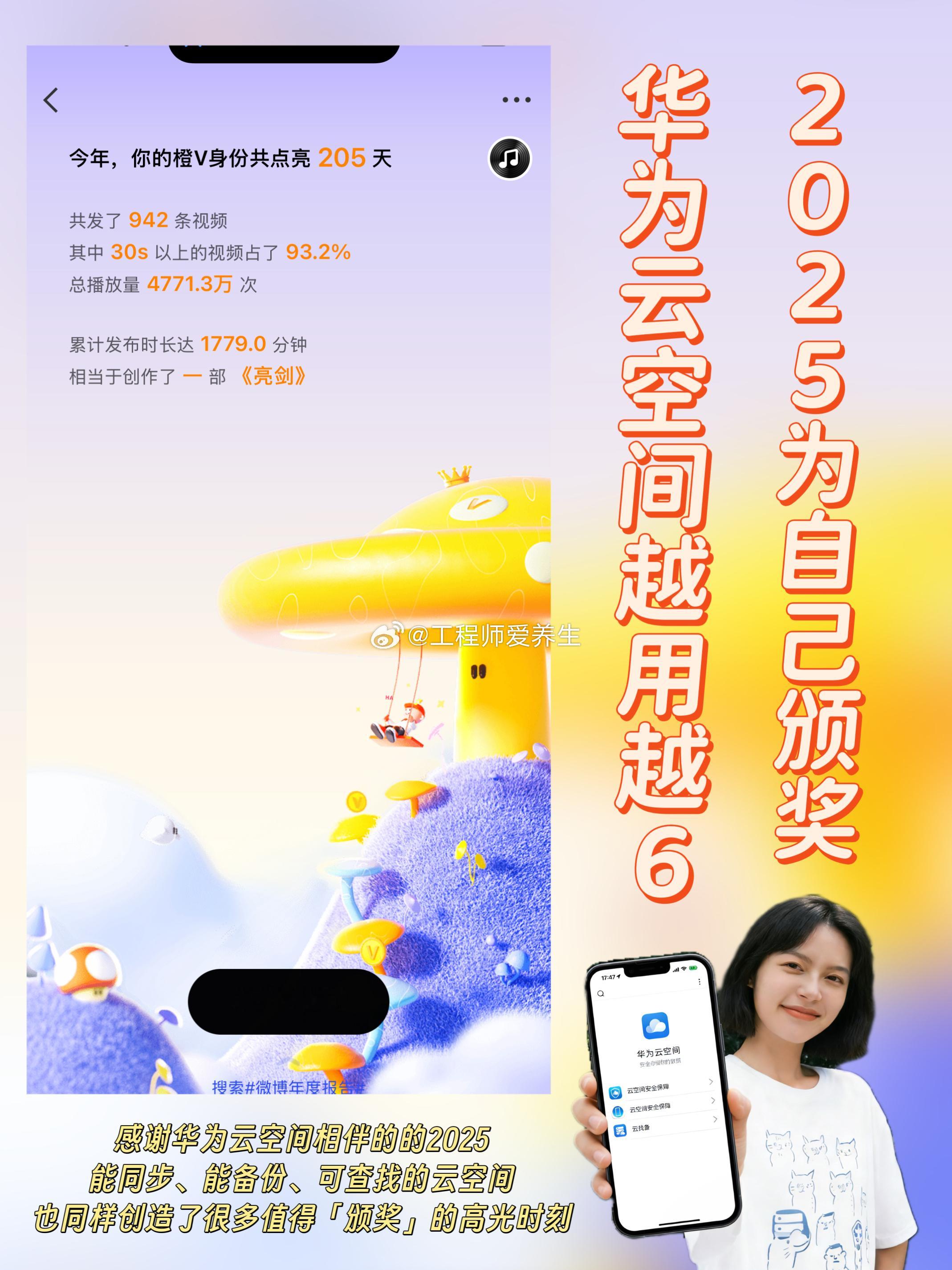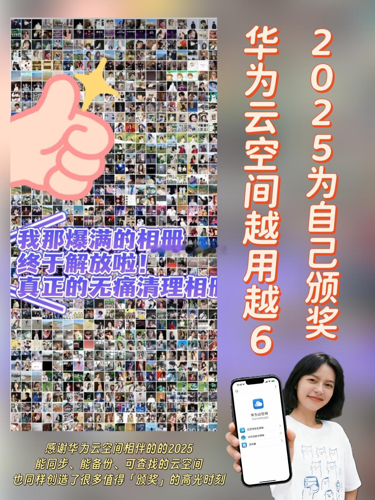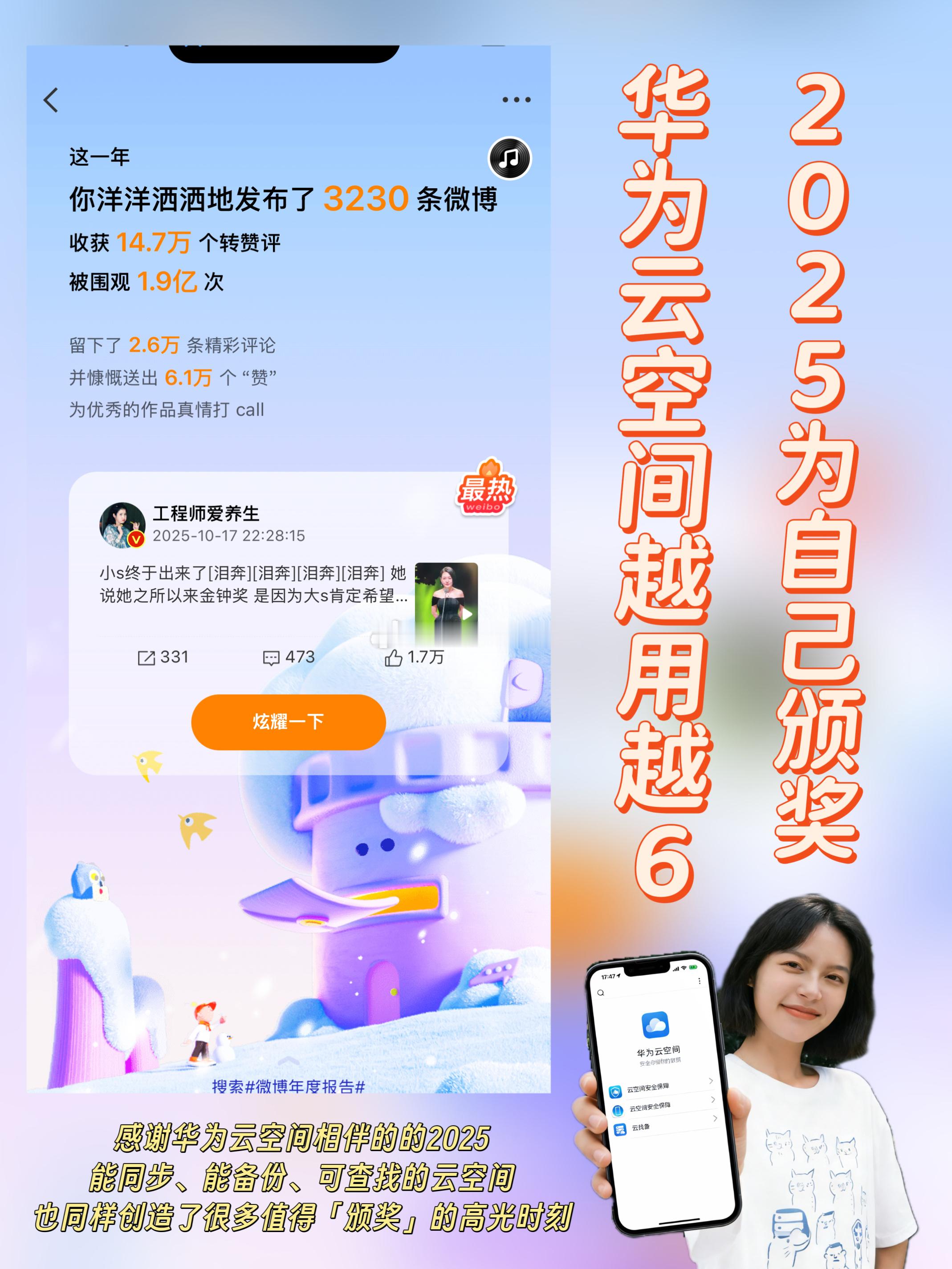 2025为自己颁奖华为云空间越用越6 🎉朋友们!2025年马上就要过完了,本熬夜剪辑选手终于能挺直腰板大声夸自己了!今年最闪亮的奖杯必须颁给——工程师ID旁边,那颗金灿灿的「金V」!从抱着手机啃剪辑教程的小透明,到熬出这颗小星星,天知道我经历了什么啊😭🌟但更想给自己颁奖的,是那个627万播放的爆款瞬间!还记得那是前几天,我瘫在沙发上翻华为云空间的「时刻」推送,突然看到之前拍的某个视频片段——我跳起来抓过平板,从云空间同步的素材库里翻出三年间所有片段,电脑都没开,直接在平板上用云空间共享的模板套上BGM…中午,那条视频就这么发出去了。后来,这个视频就这样创造了奇迹✨🏆🏆🏆🏆🏆📱而这一切,全靠我的数字外挂大脑——华为云空间!这里必须给我的“隐形战友”补一个详细的介绍🏆简单说,它就是华为设备里的“全能数据管家”。对我来说最核心的就两招,但招招救命。✅第一招:智能云同步,解放手机&多端接力这是治我“存储焦虑”的神药!只要打开“云图库”,手机里2.6万张照片、800多条视频全自动备份到云端。它还有个绝活叫“优化本地存储空间”,会自动把不常用的高清原文件保留在云端,本地只留小尺寸预览图,默默帮我手机腾出几十GB空间,让我敢随便拍4K!更绝的是跨设备无缝接力,在手机、平板、电脑登录同一个华为账号,所有素材、备忘录、通讯录都实时同步。💻上次出差救急改视频,就是用酒店电脑登录云空间网页版搞定的,真·淡定自若。✅第二招:自动云备份,给回忆上“保险”这个功能像给数据买了份保险。设置好后,手机在充电锁屏连Wi-Fi时就会定期自动备份。就算手机丢了坏了,所有联系人和应用数据都能在新设备上一键恢复。你的珍贵记忆,再也不怕意外丢失。✨对于像我这样的创作者,它还有两个隐藏彩蛋。✅社媒发图直选云端在微博等App选图时,能直接浏览、选用云端的原图/原视频,无需提前下载,流畅得就像在用本地文件。✅查找与共享万一设备遗失,可以用“查找设备”功能远程定位、锁定或抹除数据。还可以将云存储空间安全地共享给家人。🌸还有那些隐秘的温柔时刻妈妈第一次学会用共享相簿,在我加班夜悄悄上传一碟红烧肉照片;跨年剪年度合集时,云空间的“智能分类”直接把所有烟花镜头打包给我…这些碎片原来都被轻轻接住了。🎁 如何拥有同款“从容”?每位用户都有5GB免费空间起步。如果和我一样是素材狂魔,可以升级会员,比如加入 Petal One套餐,就能获得200GB甚至2TB的大空间,还能捆绑享受音乐、视频等权益。据说升级到HarmonyOS 5.1及以上版本,还有机会在“鸿蒙有礼”活动里抽中会员体验。🎬所以今天这个奖,要颁给2025年每一个敢做梦的自己——给蹲在天台等晚霞的半小时,给通宵剪片时自动同步的每一版视频文件,给突然灵光一闪时、能立刻从云端抓取三年前素材的奇妙能力!我们的记忆和灵感,都值得被如此温柔安放。🔥最后想对2026说继续冲吧!反正所有鲜活的、毛糙的、发着光的素材,都有华为云空间这片“云朵”替我记得📲 它用端到端加密、多重安全技术默默守护着一切,让我能放心创作。