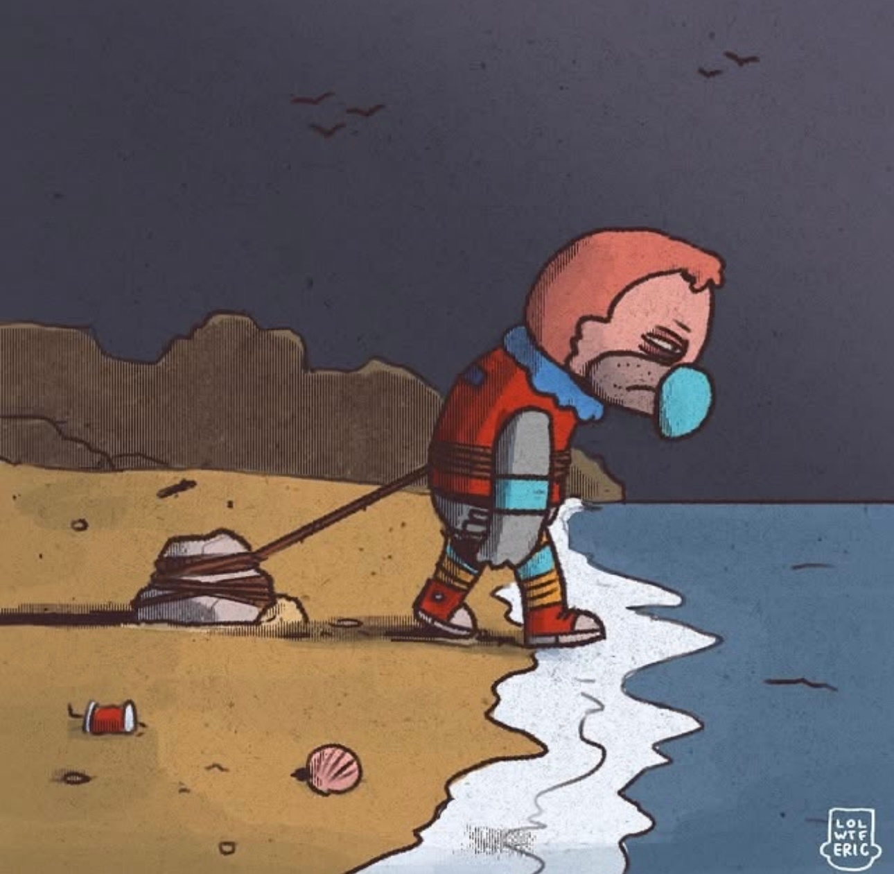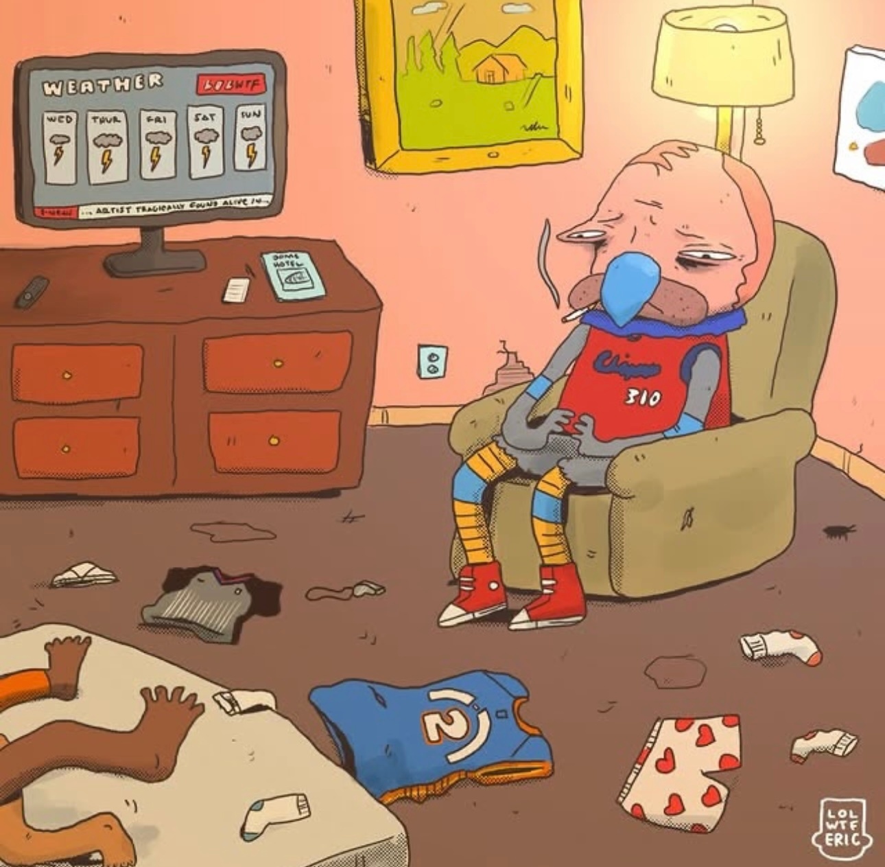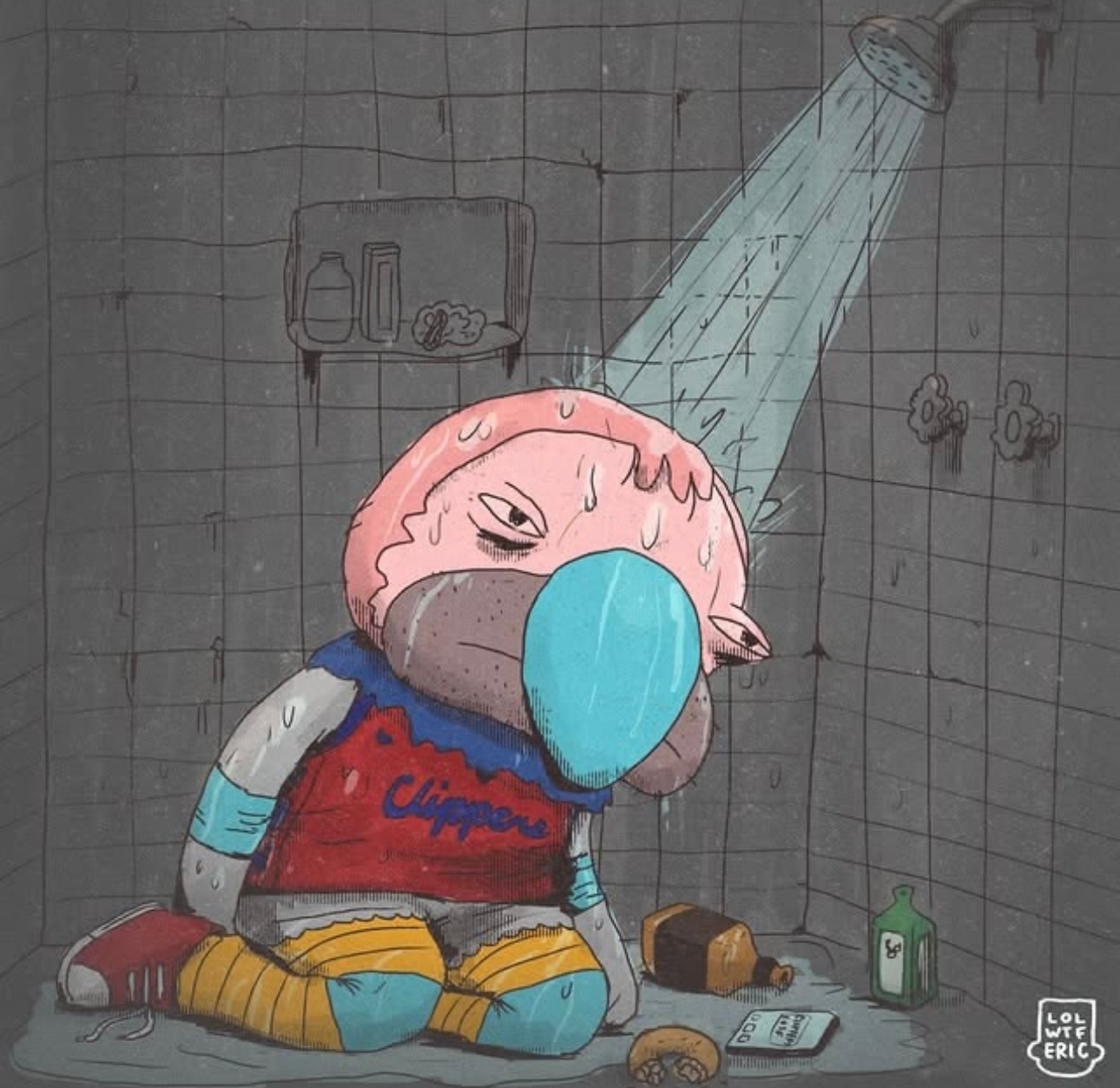 通过侧面描写快船队吉祥物“神鹰查克”的凄惨生活,以表达快船队的……Images via consciousbb