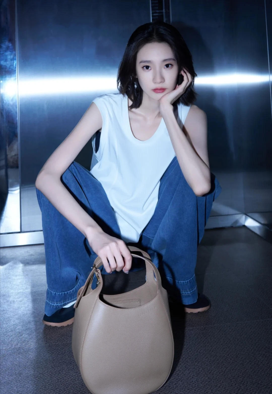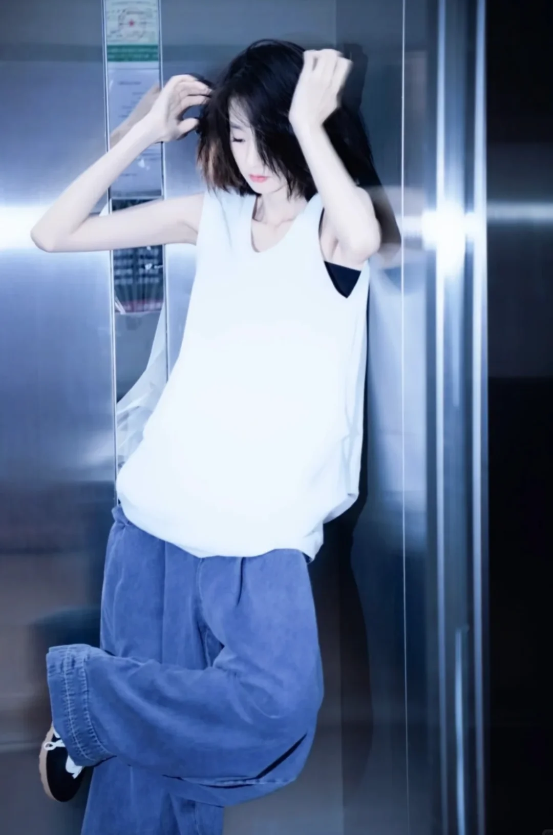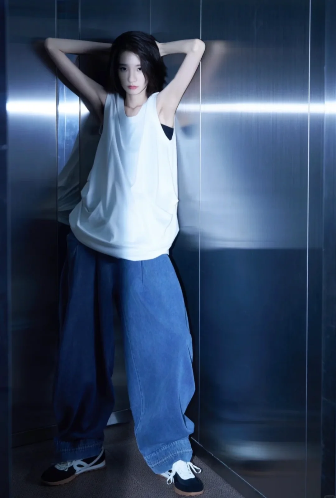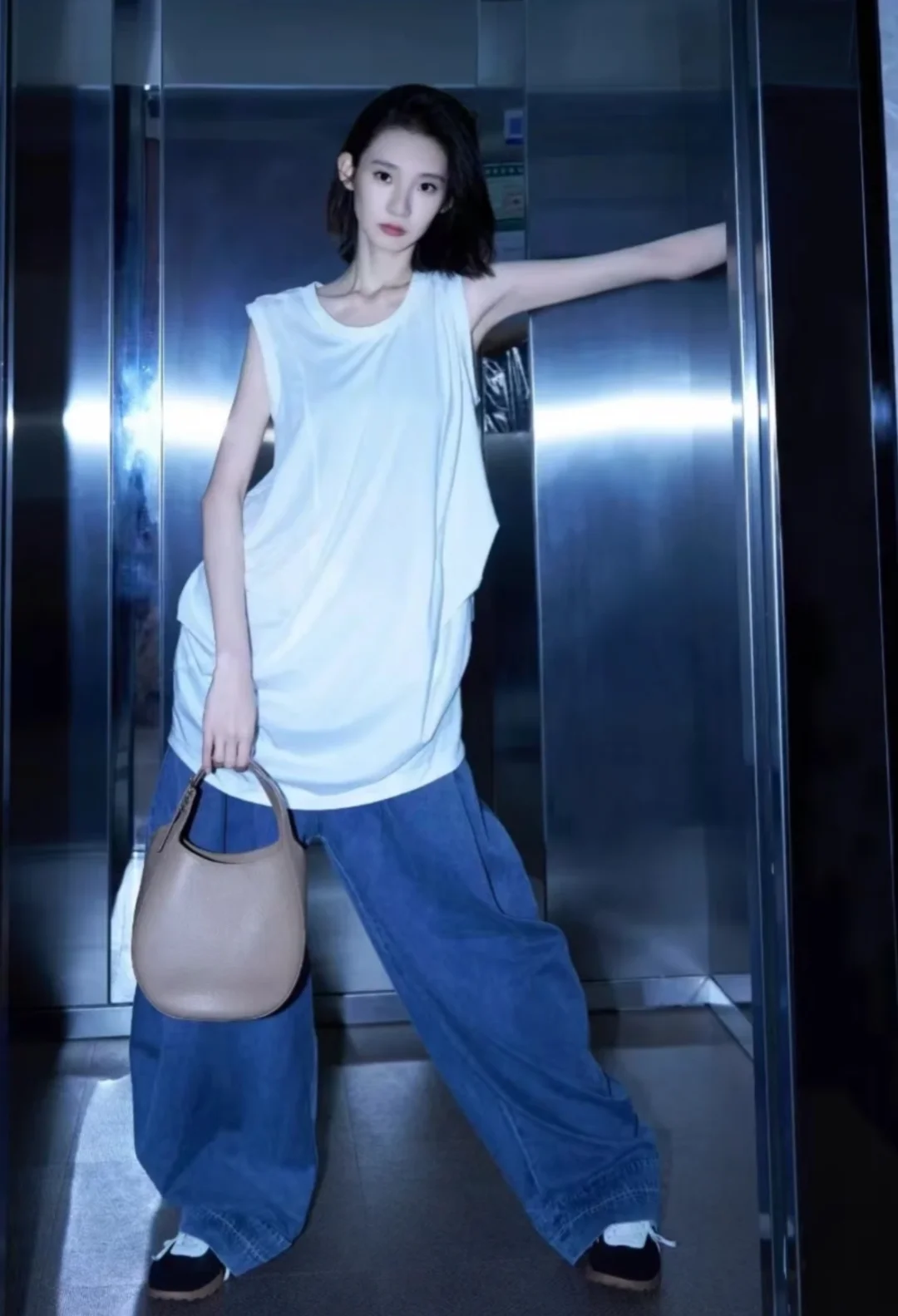 谁懂啊✨ 张艺凡最新私服穿搭又鲨疯了! 简单无袖白T+松弛感牛仔裤 ,随性又自带气场,配上休闲包包和德训鞋,松弛中透着精致,帅气与迷人感直接拉满,日常这么穿,走路都带风,一整个被拿捏住,跟着穿准没错~