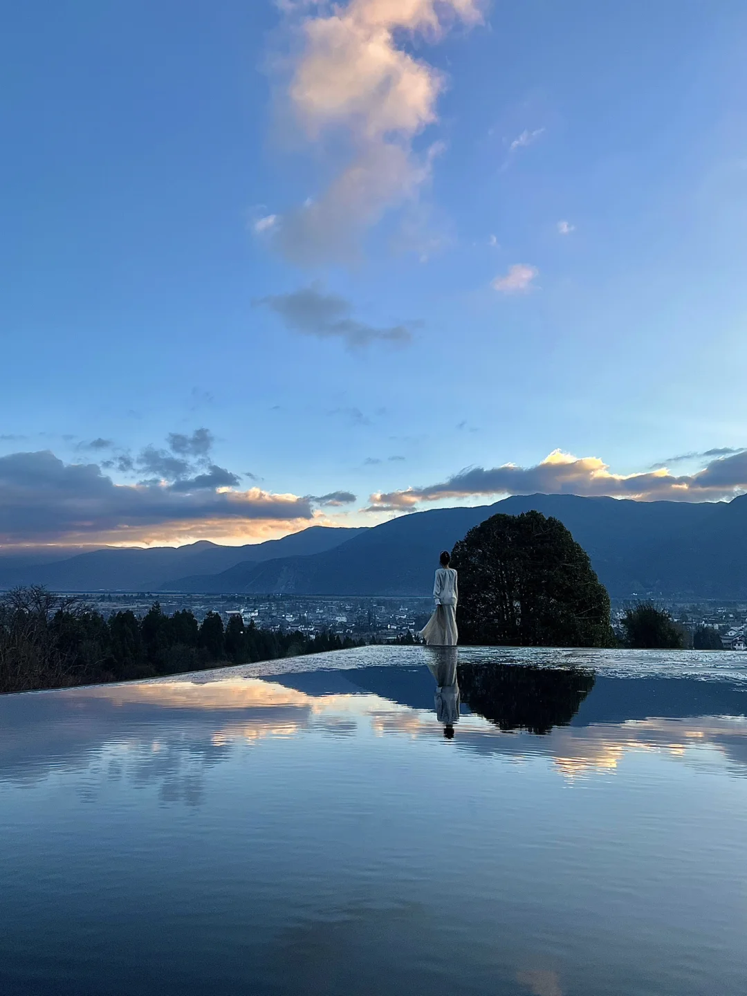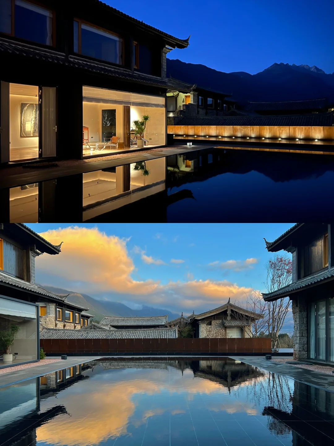 🔸酒店大堂外的水池天气好的时候可以倒影出玉龙雪山