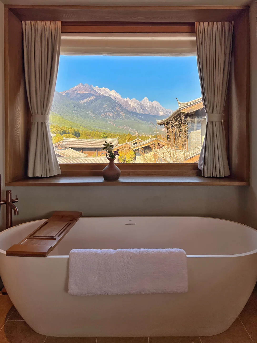 🔸酒店大堂面的挑高大落地窗尽收玉龙雪山美景