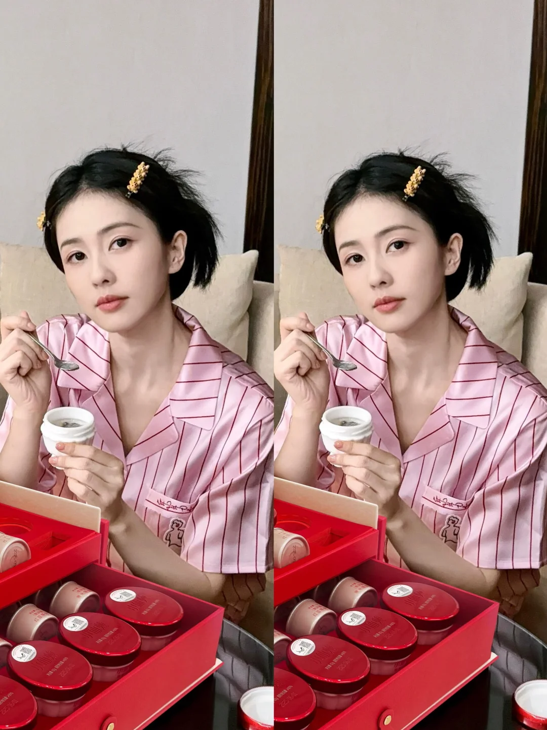 元气宝藏女孩儿白鹿更新啦!粉色居家服也太绝了吧💖 浅粉色条纹+丝滑面料,慵懒又温柔,在家追剧、发呆,舒适度直接拉满✨ 感觉生活都变甜甜der,幸福感爆棚💯