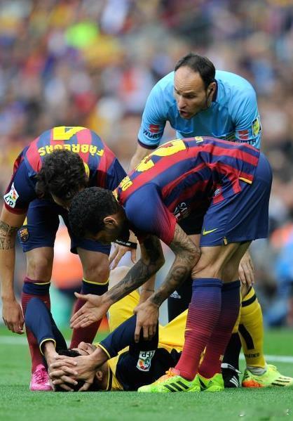 【西甲-马竞两将伤退半场0-1巴萨】5月18日,赛季西班牙足球甲级联赛第38轮一场焦点战在诺坎普球场展开争夺,巴塞罗那主场对阵马德里竞技。马竞开场22分钟连伤科斯塔和图兰两位大将;巴萨凭借桑切斯的世界波破门取得1-0的领先。西甲