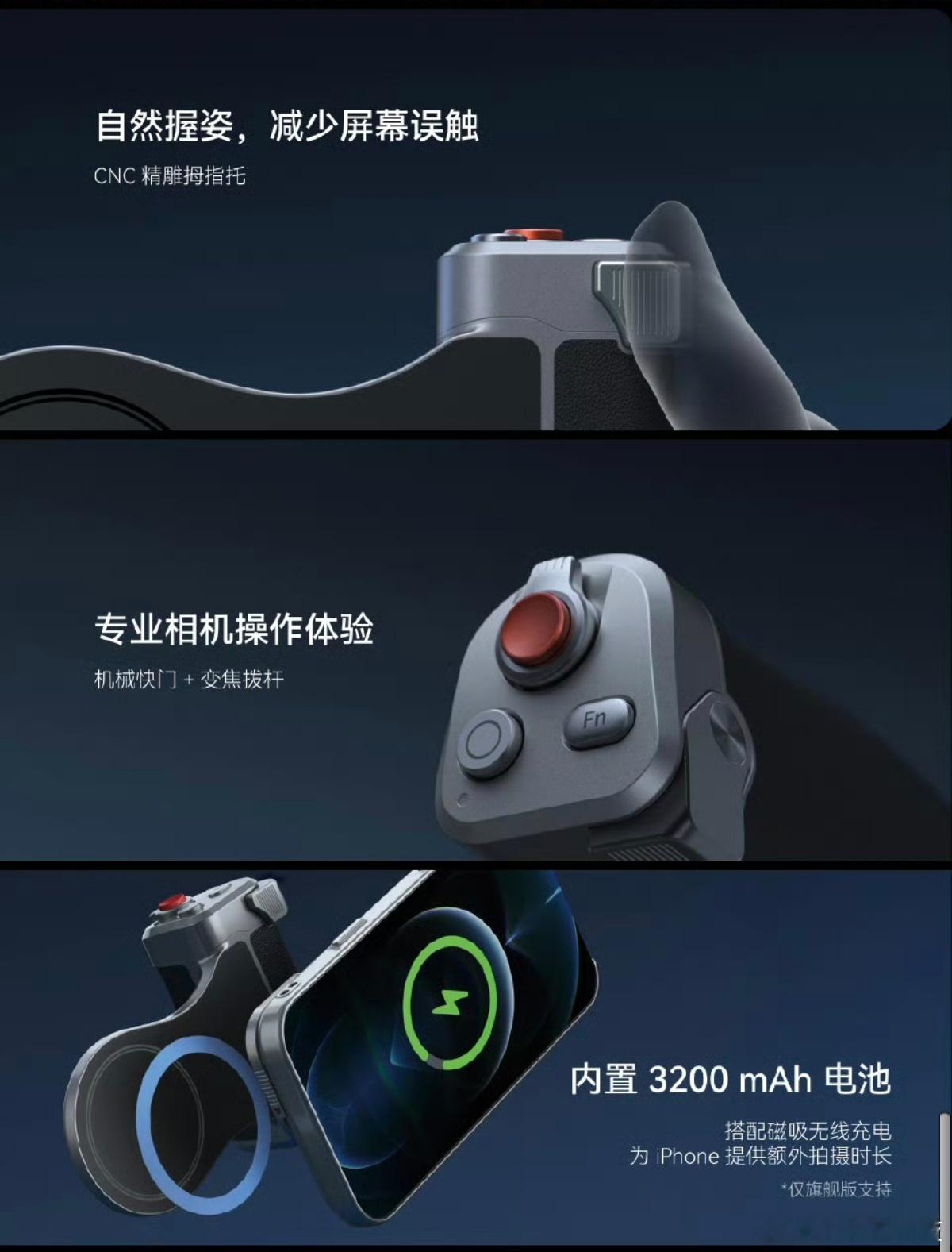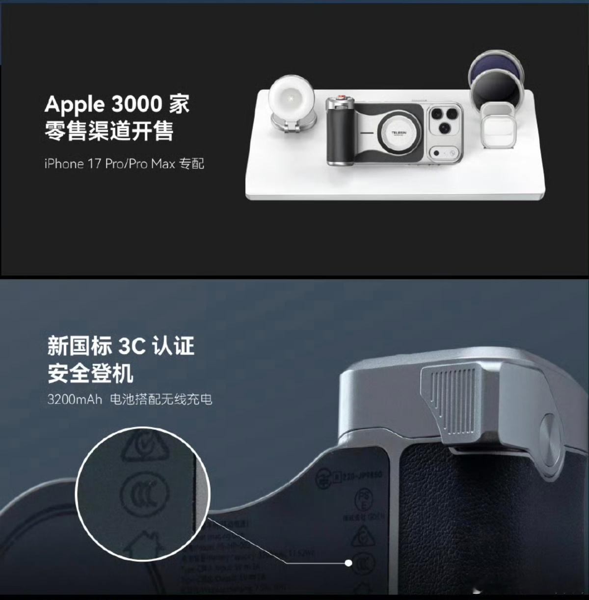 泰迅摄影套装的重点知识:1、已经进驻3000家Apple零售渠道,大师影像套装适配 iPhone17 Pro/Pro Max 。2、内置3200mAh电池,通过了新3C认证。3、支持多款光学滤镜、支持闪光灯外挂,还有7600mm²石墨烯散热。目前,全国3000家Apple 授权店已经开售,属于iPhone用户的摄影套装终于来了!