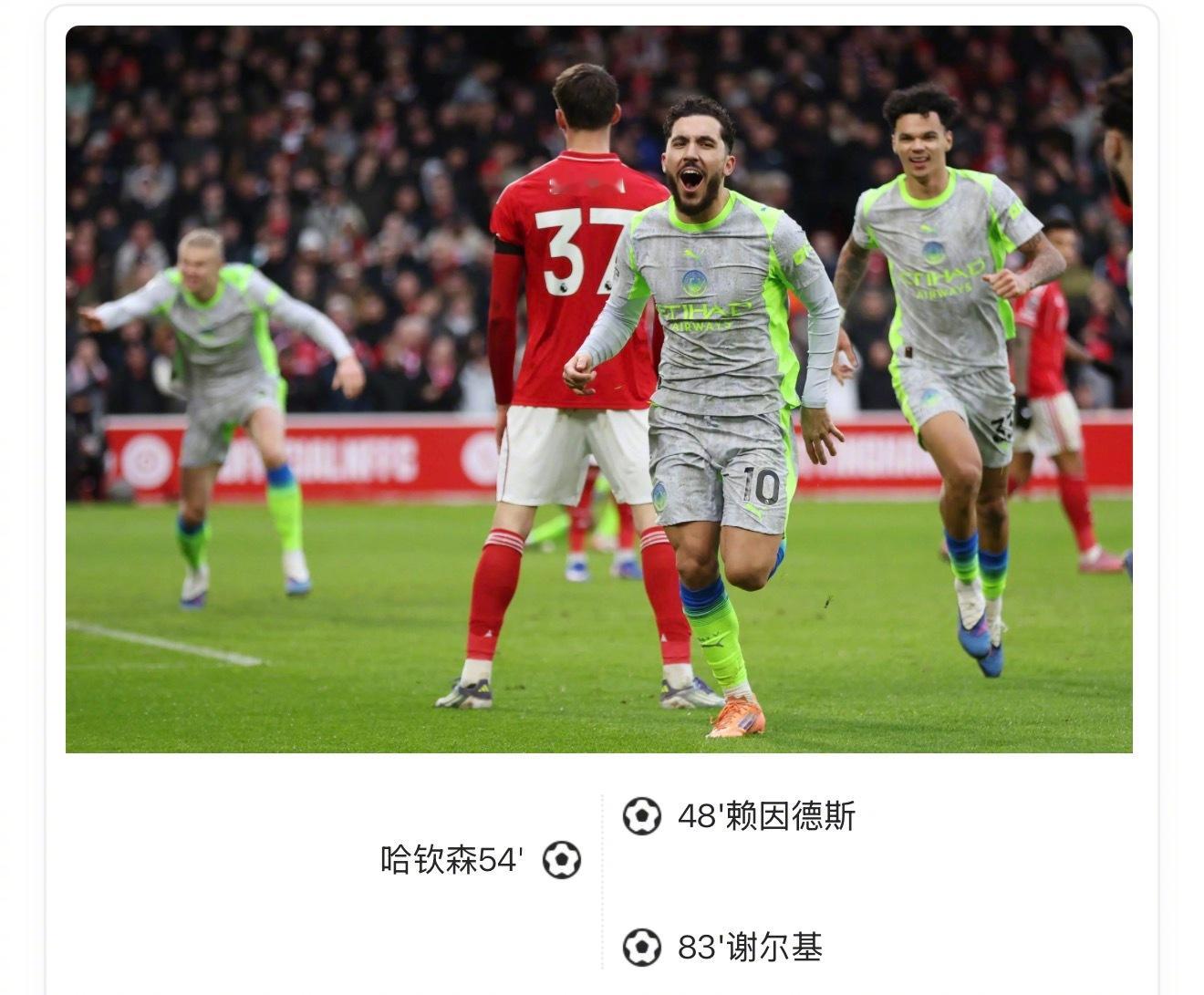 【战报:诺丁汉森林1比2曼城,谢尔基传射,赖因德斯破门】凭借谢尔基、赖因德斯的进