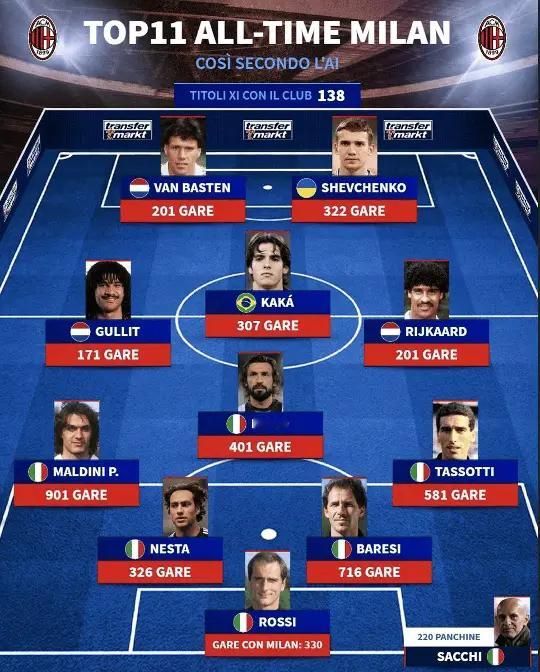 AI认为的米兰有史以来最强的阵容组合,你认同吗?