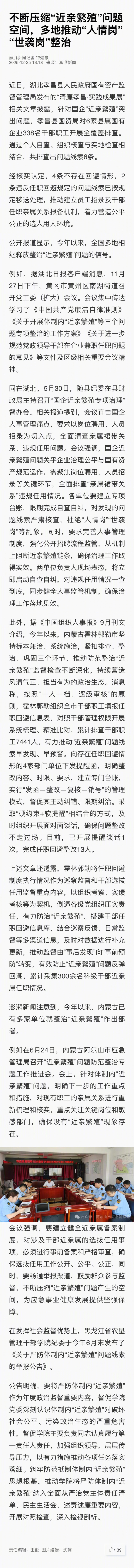 整治国企近亲繁殖问题不能仅自查自纠【评论丨整治国企“近亲繁殖”问题,关键要“拔出萝卜带出泥”】整治国企近亲繁殖要拔出萝卜带出泥 2025年以来,包括湖北、内蒙古、黑龙江等多地相继开展针对国企等体制内单位“近亲繁殖”问题的专项整治行动。这类问题指领导违规招聘或安排亲属进入本单位工作。例如,湖北孝昌县对6家国企的338名职工排查后,将2条违规线索移送处理,并建立了亲属关系报备机制。全网热点共创计划 我在十几年前曾上报过一篇题为《央企“世袭化”现象,应该终结》的社情民意,还得到一位副省长的批示。没想到十多年后,我们还在讨论这个问题,而且感染到地方国企。“拔出萝卜带出泥”的犀利呼吁,直指整治“近亲繁殖”的核心要害。各地频频部署的专项排查虽已形成声势,但若问责止步于“自查自纠”和内部“了结”,只解决表面的“萝卜”,而不深挖其背后滥用职权、破坏公平的“泥”——即具体决策者和责任人,则难免沦为形式。整治的长效关键在于将监督从事后移至事前,通过建立公开的亲属信息库、严格执行任前报告与公示等“硬约束”,从源头压缩操作空间。唯有让每一个“沾泥带水”的违规者都受到具名追责,才能真正消除侥幸心理,捍卫用人公平的底线。