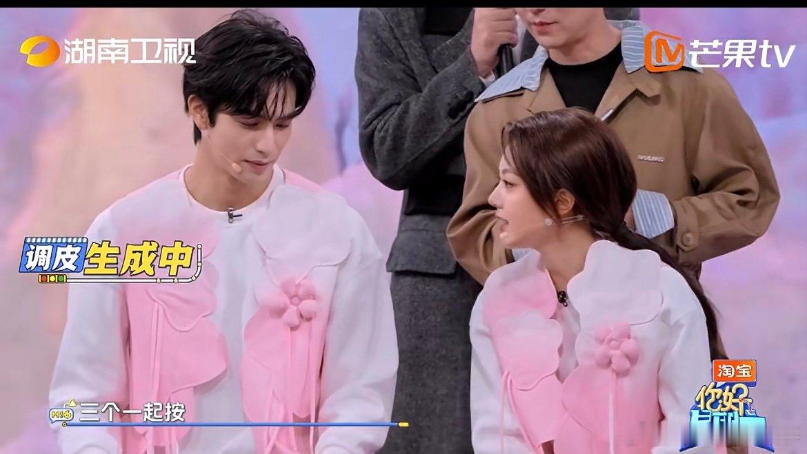 宋威龙完全魔童来的 谁懂宋威龙这波操作的脑洞!和赵今麦默契答题获胜后,他对着麦麦好奇发问 “三个一起按会怎么样”,张颜齐一句 “魔童来了” 精准锐评~ 你好星期六