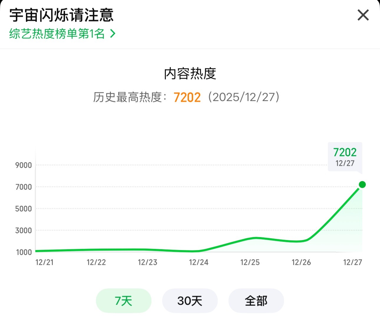 破7000了王鹤棣宇宙闪烁请注意