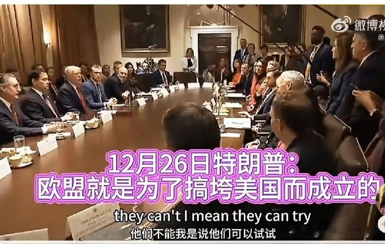 12月26日,美国总统特朗普称,“欧盟就是为了整垮美国而成立的。” 此言论表达了