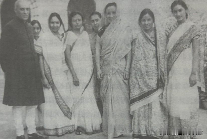 1942年2月,宋美龄陪同蒋介石访问印度期间,与尼赫鲁和印度妇女代表合影。宋美龄在访印期间发表了《我们中华妇女》的演说,向印度妇女介绍了中国妇女参加抗战的情况。她指出,日本不仅是中国的敌人,也是印度的敌人,呼吁印度妇女关注抗战形势。3月8日国际妇女节,宋美龄通过广播向世界介绍中国妇女战时工作情况时,再次提到印度之行。
