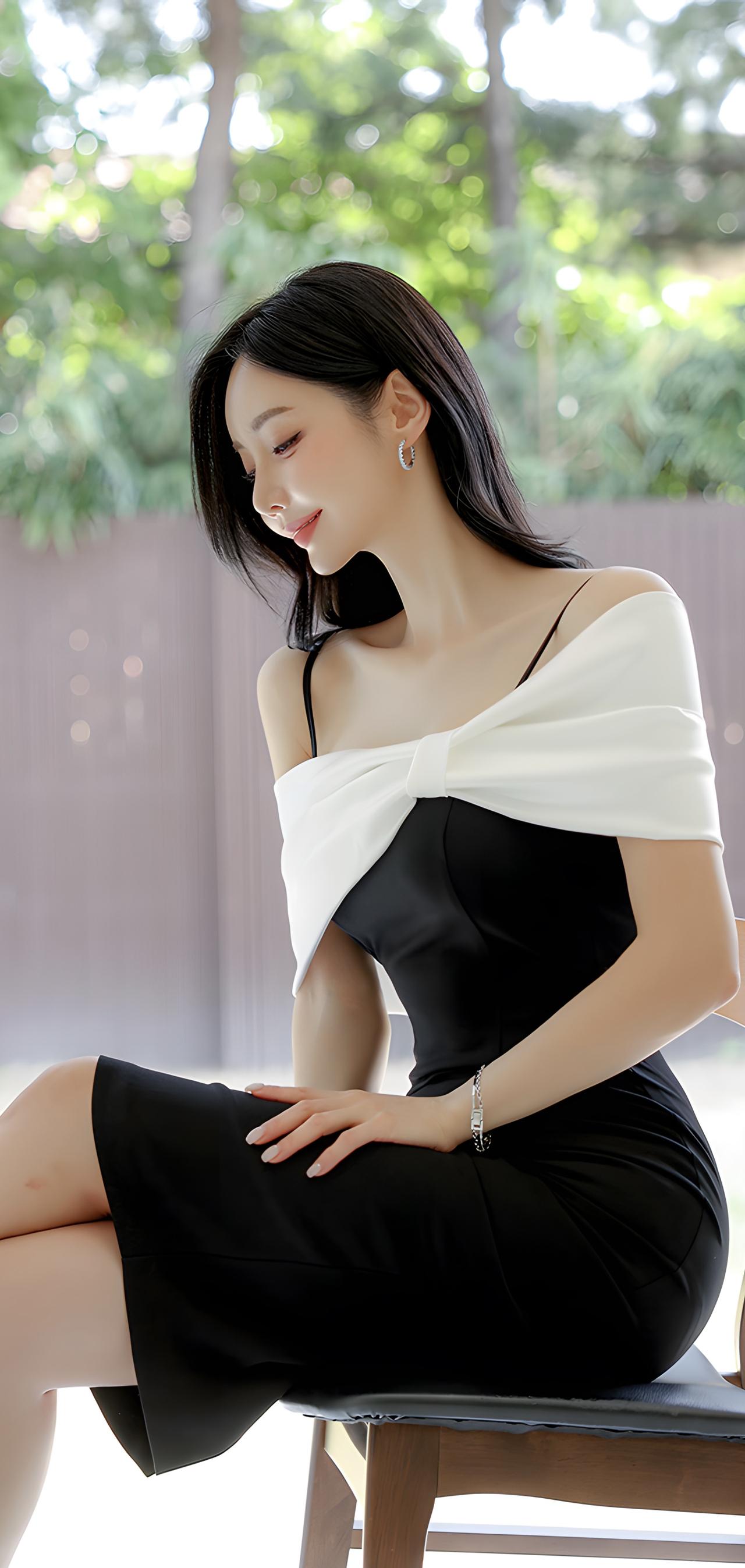 优雅黑裙,甜美蝴蝶结,夏日清新穿搭