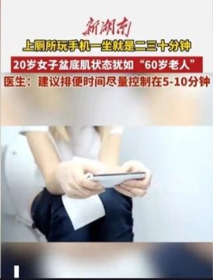 20岁姑娘如厕刷手机,盆底肌竟"早衰"成60岁状态? 谁能想到,卫生间里的"摸鱼时光"竟会让20岁的身体零件提前"退休"?浙江宁波的小玲(化名)最近就遭遇了这场哭笑不得的健康危机——排便时的肛门剧痛+鲜红便血,让她以为是痔疮找上门,可检查结果却让医生都咋舌:盆底功能评分仅45.9分,连80分的正常线都没摸着,比不少60岁老人的状态还差劲! 这个"离谱"结果的罪魁祸首,正是她雷打不动的如厕习惯:每次坐马桶必揣手机,刷短视频、回消息一不留神就蹲二三十分钟,把卫生间当成了"沉浸式娱乐间"。接诊的何红艳医生解释,盆底肌就像盆腔里的"弹性吊床",本该稳稳托住盆腔器官,可长时间蹲坐让它持续承压,硬生生被熬成了"松垮的橡皮筋"。更糟的是,注意力全扑在手机上,不仅让排便反射变迟钝,还导致肛门括约肌松弛,肠液外漏把肛周皮肤"泡"得发脆,一排便就容易裂口子,疼得小玲直咧嘴。 别以为这只是个例!现在不少人把如厕时间当成"续命时刻",殊不知1的经历——别让手机成为肛肠健康的"隐形刺客"呀!盆底肌产后恢复 盆底肌产后