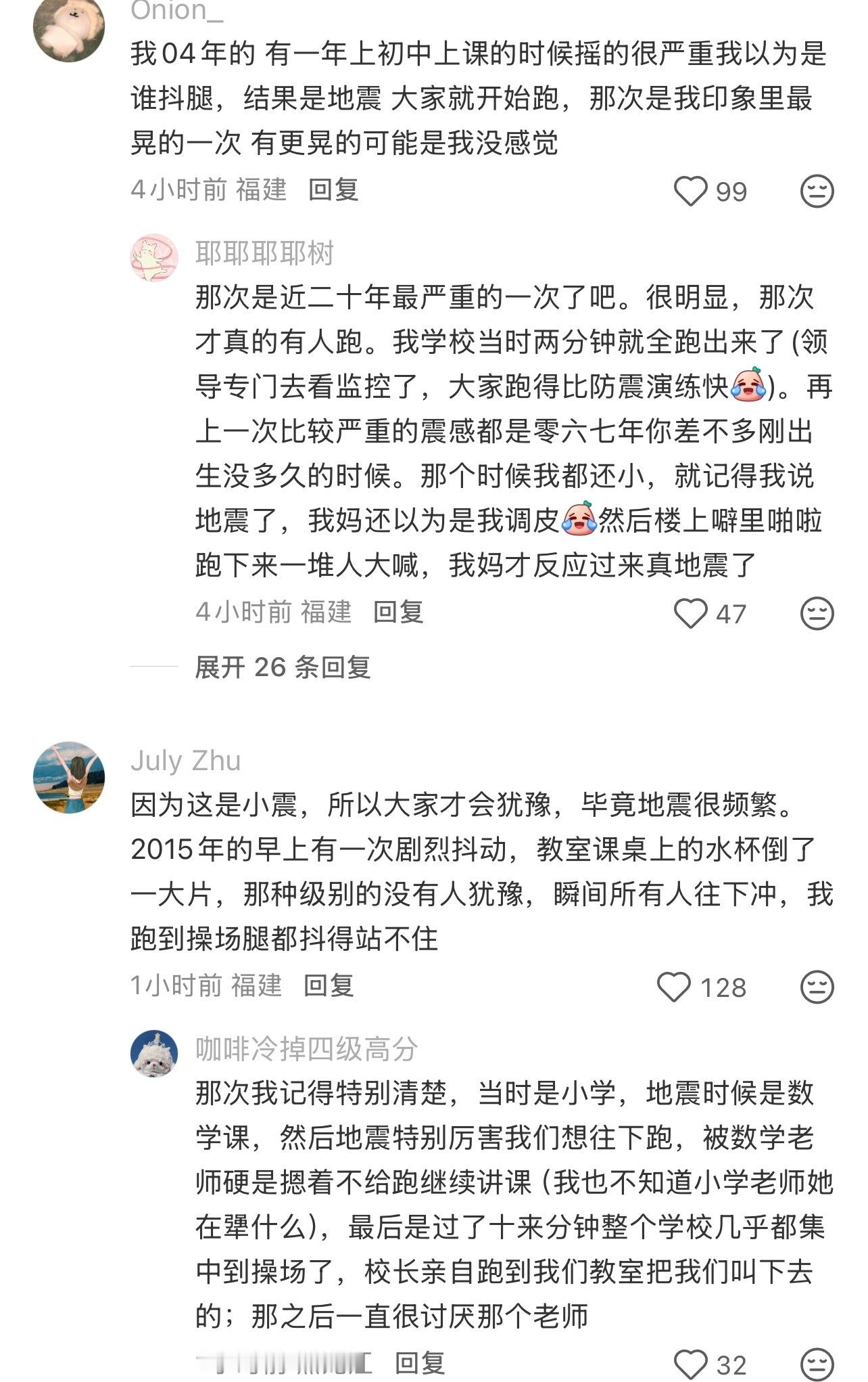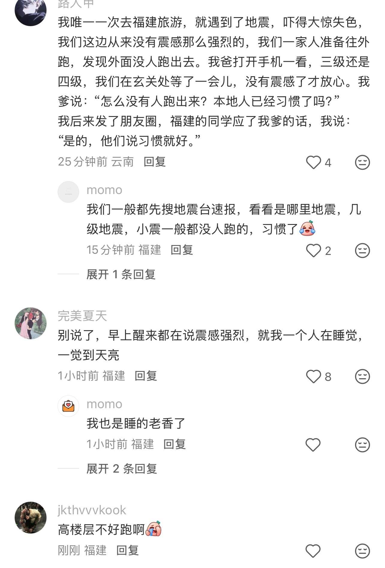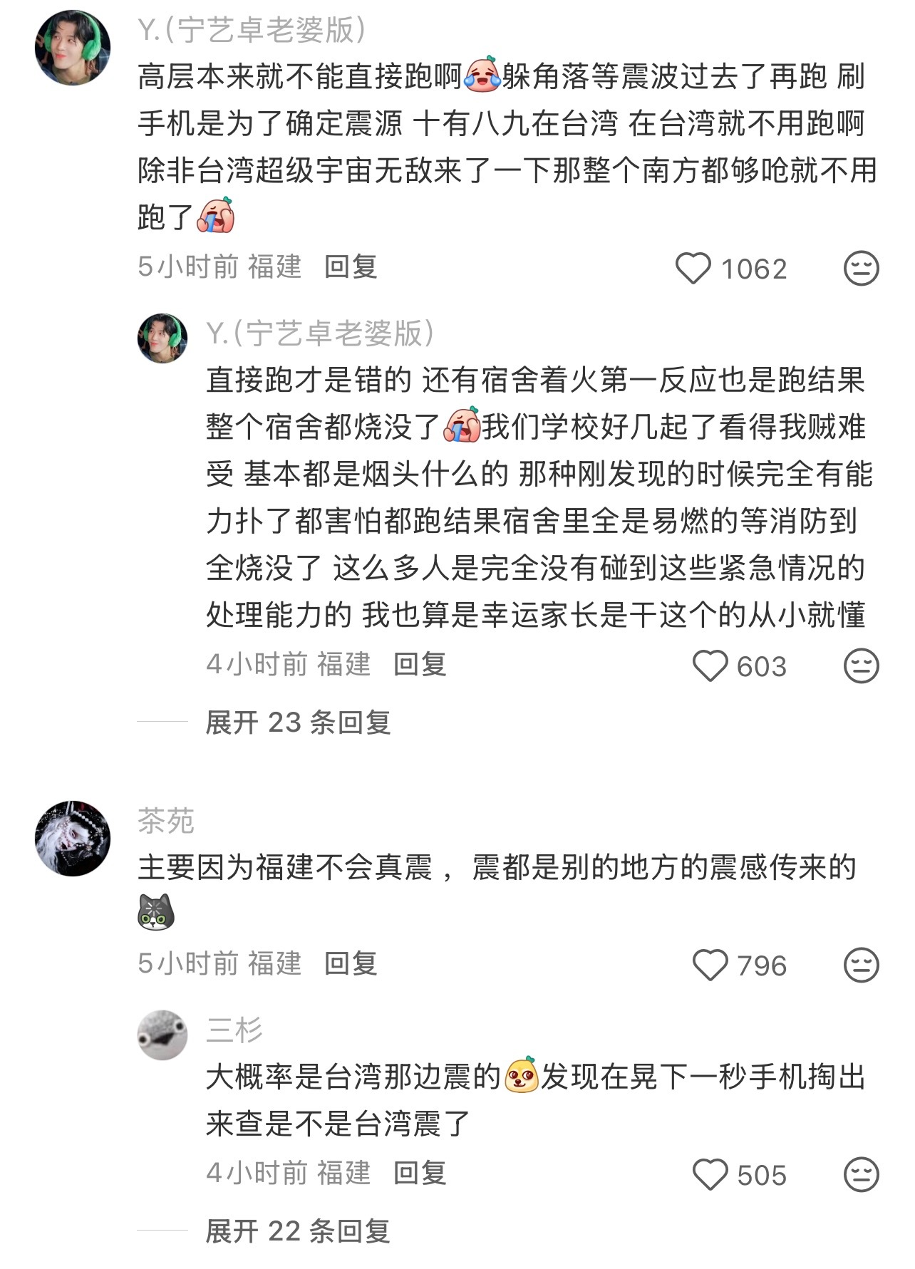 福建人不是不重视地震,是这些年台湾地震,已经陪摇习惯了,下意识知道不需要跑,但是这个习惯确实很可怕