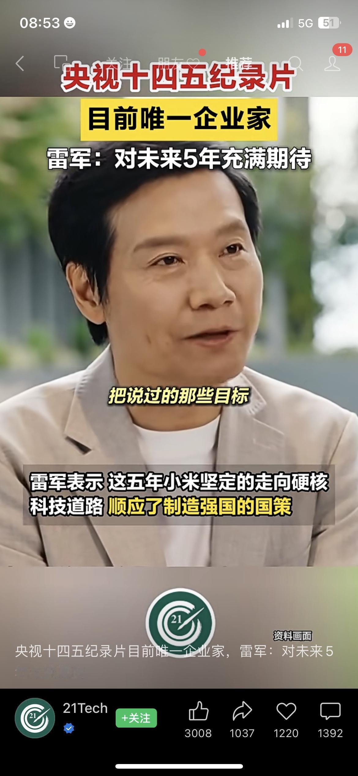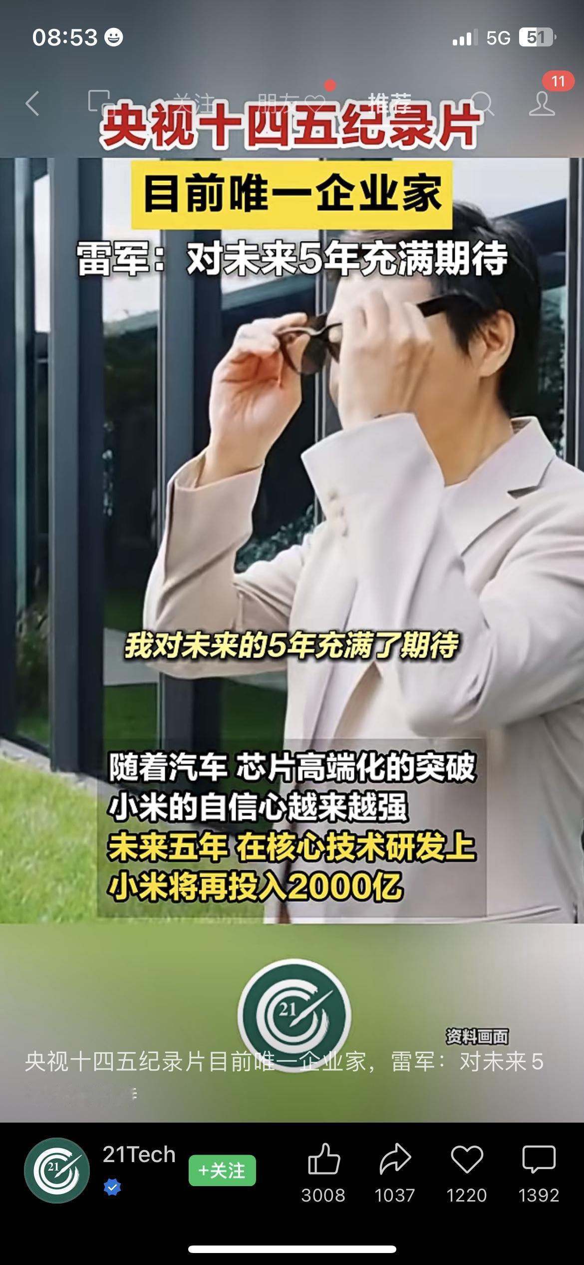 雷军端坐在小米科技园的会客室中,语气沉稳而坚毅,表明在死磕硬核科技这件事上,绝不含糊。 官方宣布要沉下心来,投入巨额资金搞研发,全身心聚焦于汽车和芯片两大领域,既不走捷径,也不搞花架子。 从做手机,到造汽车,再到攻克芯片这块最硬的骨头,可见小米的发展之路愈发坚实。 国货科技若想真正崛起,就需要有这种沉下心搞研发的狠劲,这才是实实在在的底气。 你认为小米死磕硬核研发,能否在汽车领域立足?你更看好它哪项业务呢?