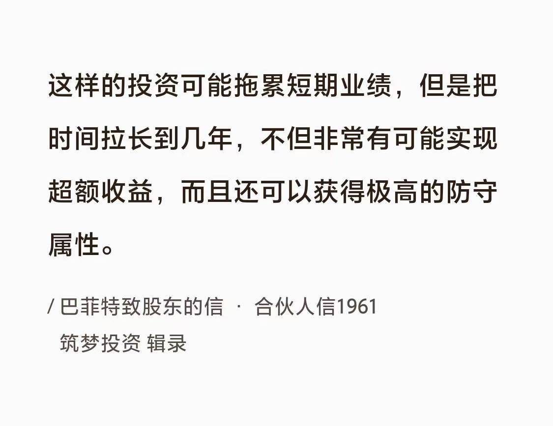 巴菲特曰:“这样的投资可能拖累短期业绩,但是把时间拉长到几年,不但非常有可能实现超额收益,而且还可以获得极高的防守属性。”