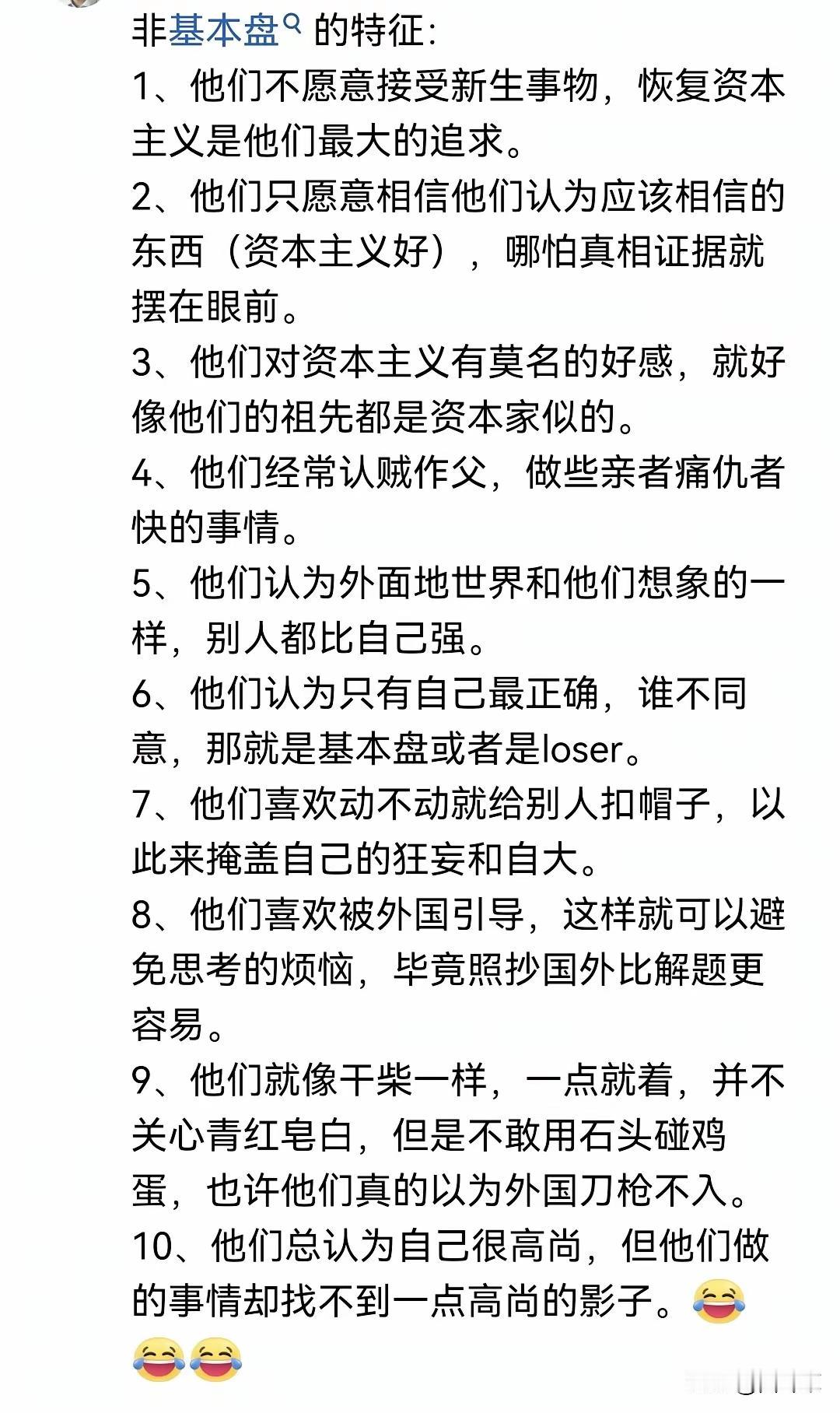 有一个很好的判断标准, 一说中国好的方面,他们就炸毛, 一说外国不好的方面,他们也炸毛, 一谈立场,他们还炸毛, 只要是中国的一定是不好的,只要是外国的一定是好的,