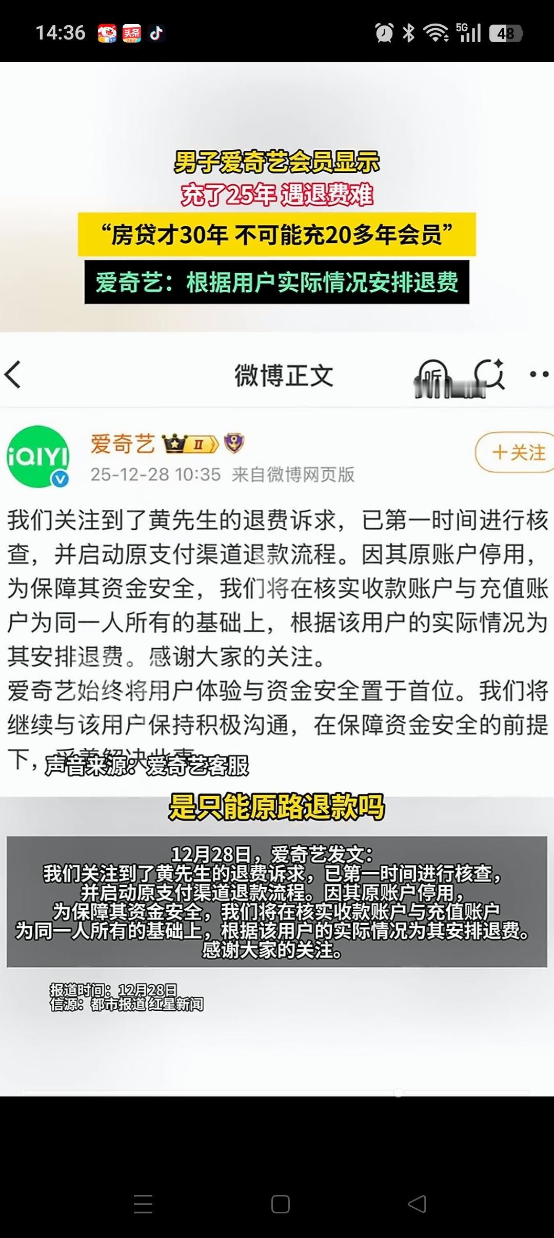 “不是谁闹谁有理”,男子充25年爱奇艺会员,用了8年才想起来要退款,明显是自己理亏!当初充值的时候肯定是有优惠的,他自己或者家人又喜欢看电视剧,才脑子一热给充值了25年。 关键是网站答应原路退回,他又不同意,说以前的支付宝被别人注册了,不能用,真的逗![捂脸] 最新消息是网站答应根据实际情况安排退费,男子可以提供新的收款账号,核实名字即可。 现在还剩下大概17年,估计还不到1500块钱。为了这么点钱,就不要脸面这么闹,这男的脑子真是秀逗了。。