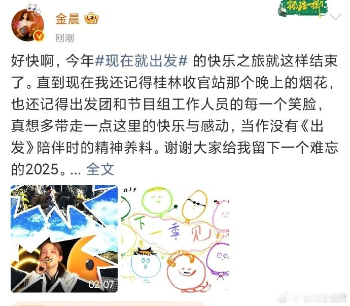 金晨发布长文告别《现在就出发》,笔下书写相处的温暖日常,手绘的出发团画作满含心意,情谊在字画间慢慢发酵。金晨发长文告别现在就出发金晨画的出发团