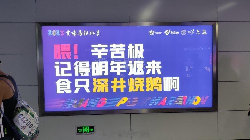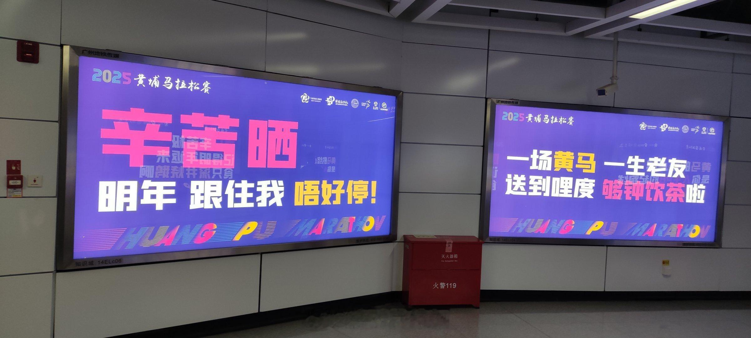 2025广州黄埔马拉松完赛离场必经地铁通道里,已经换上了完赛内容的灯箱。这个我第一次见这么时间地点准确的投放,细节把握,应该给传播组加鸡腿跑步广州黄埔马拉松赛事组织第一赛道 广州·知识城(地铁站)