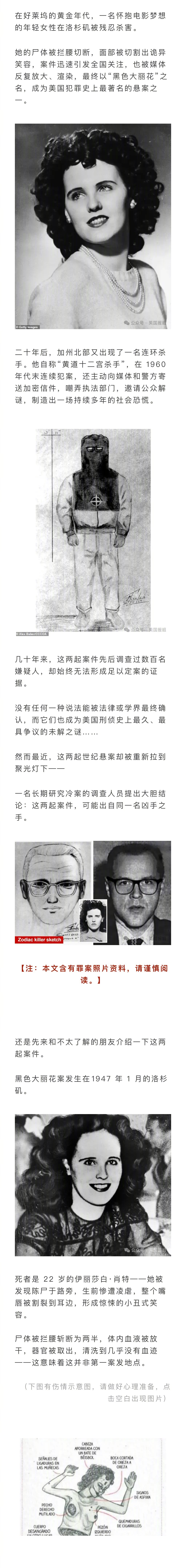 最近,美国一个冷案调查公司的调查记者,疑似破获了黑色大丽花案!其凶手,疑似和黄道十二宫连环杀手是同一人,也是黑色大丽花案受害者的前男友? 调查记者从杀害多人、还向媒体发出密码信挑衅的黄道十二宫杀手留下来的密码开始破解,却发现他和黑色大丽花案的关系颇深,且有多重物证证明其观点。 目前,其调查研究结果已经获得了多位专家的认可,美国警方与联邦调查局也开始和他接洽……莫非这两宗世纪悬案,真的要破了?