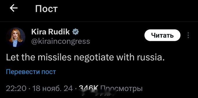 在乌克兰连续遭到俄军大规模无人机导弹空袭后,乌克兰最高拉达议员、“声音” 党党魁基拉・鲁迪克愤怒发帖:“让导弹去与俄罗斯谈判”。乌克兰人的脑子结构经过这20多年来的证明,的确存在问题。这位乌克兰妹子思维方向搞反了。毕竟当年是泽连斯基误判对手,听信了小金毛“让最后一个乌克兰人去与普京谈判”,手撕了最大限度保证乌克兰领土和主权完整的“伊斯坦布尔协议”后,导致普京下决心“用导弹去与乌克兰谈判”,以至于乌克兰今时今日面对破烂不堪局面。“让导弹去与俄罗斯谈判”---问题在于,乌克兰得有导弹,或者说得有足够数量,足够先进的导弹。妹子恐怕是在DS洗脑下,对乌克兰军事现状存在了解不足,盲目乐观。昨天,为什么普京突然现身前线指挥所并说出一段意味深长的话:“俄罗斯已对乌克兰兰军队撤出顿巴斯的谈判条件毫无兴趣”,普京挟俄军连克季米特洛夫,古利亚伊波列等顿巴斯战略性城市之威说的这句话,不是说给俄罗斯人和乌克兰人听的,在普京的眼里,泽连斯基怎么想怎么做已不重要,重要的时普京需要特朗普明白,乌克兰越挣扎,受创越重,美国想获得的利益也会越来越小。没有美国的支持,“乌克兰之友”撑不了几天就会树倒猢狲散。呃,今天,泽连斯基将飞往美国面见特朗普。普京突然穿上军装普京称已无兴趣等乌方从占领区撤出俄乌冲突