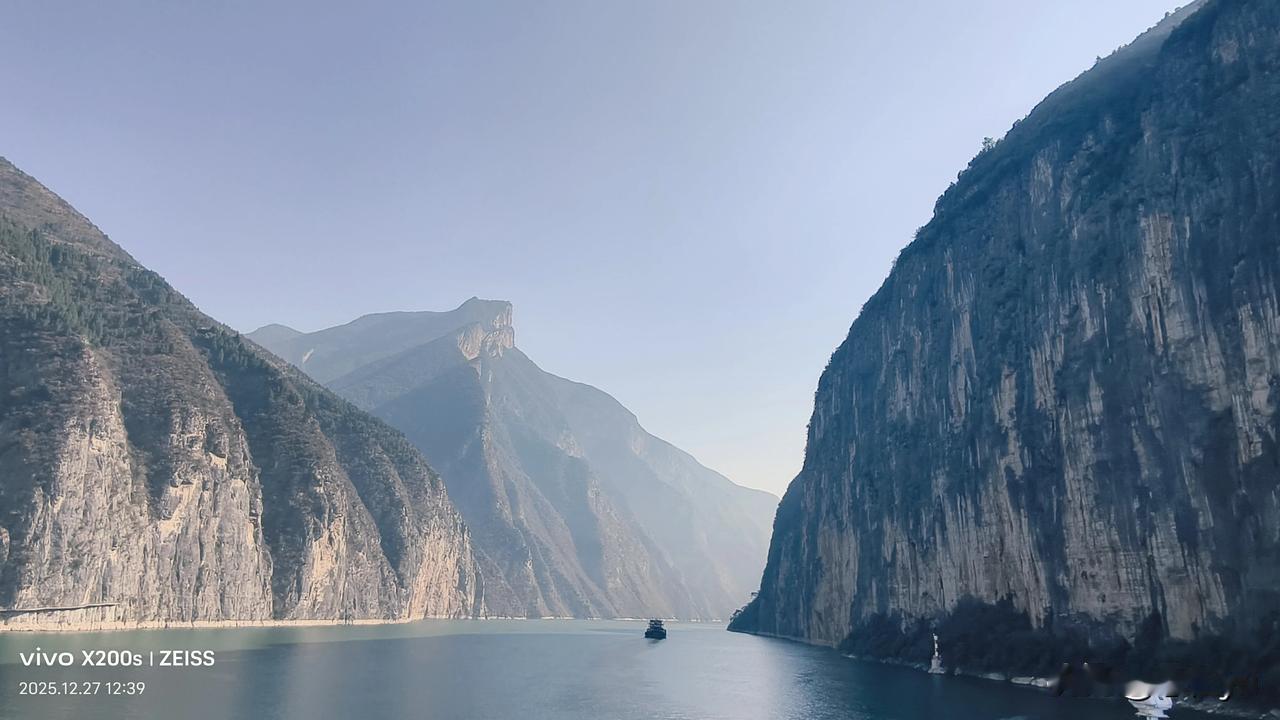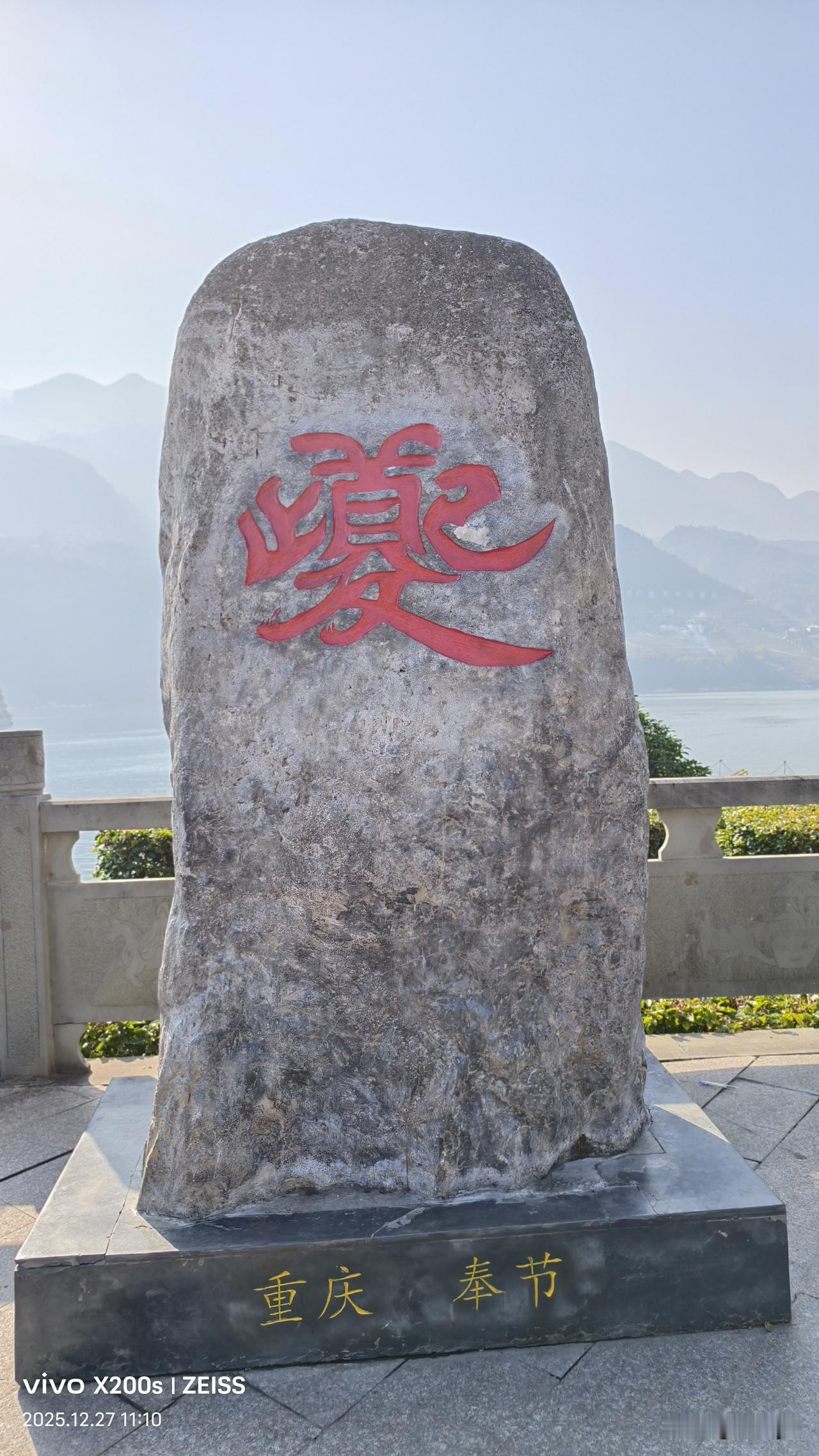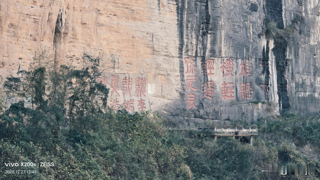 瞿塘峡美景:夔门——10元人民币背面取景图;摩崖石刻(游轮行进中拍摄) 人民币效