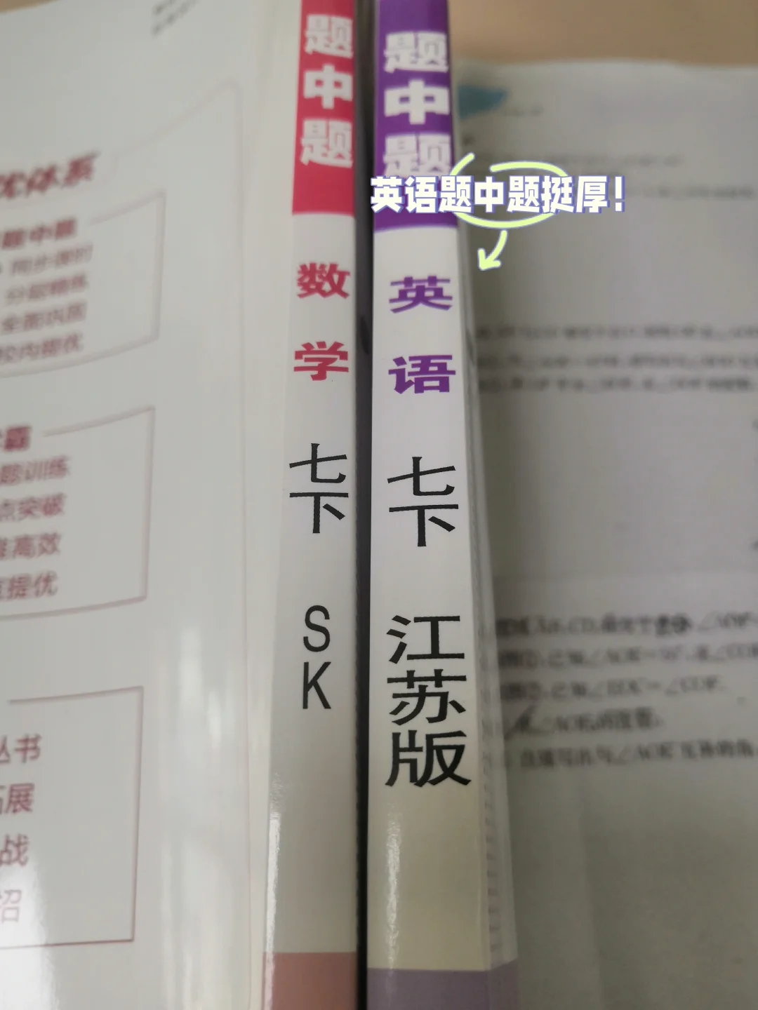 小学用的学霸,初中学霸题中题也不能落下,题目难度还是有的,分步练习,如果冲高分,一定要重视压轴题的练习,同时也要注重基础题的准确率与速度!唯有多练习,多刷题,错题复盘,才能在考场上越做越顺,好多题会觉得眼熟,细心点总会得到不错的分数! 从英语和数学这两本教辅的厚度对比来看,英语题量还是很大的,如果能做完,真的不容易!绝对是学霸了!
