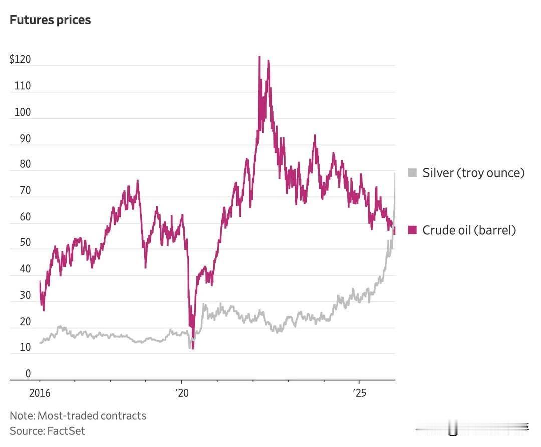白银价格在2025年一路狂飙,正式写下历史性时刻,一盎司白银的期货价格,已经超过了1桶美国原油。白银今年涨幅翻倍,站上每盎司76美元以上,反观西德州原油却跌到50多美元,两者形成强烈对比。 这种情况自1980年代原油期货市场成形以来,几乎从未出现,白银同时被投资人与产业界疯狂抢购,而石油市场却陷入供给过剩,和黄金一样,白银成了资金避险、对抗货币贬值的重要工具,许多原本会买黄金的投资人,转而选择价格相对便宜的白银。 但白银不仅是一种投资标的,它更是一种关键工业金属,太阳能板、电动车、医疗器材、资料中心与电子设备,都大量依赖白银的导电与抗菌特性。 根据《华尔街日报》报道,目前全球太阳能产业,就吃掉了接近三成的白银年产量,而且欧洲与中国的装置速度并没有放慢,问题在于,白银供给几乎赶不上需求,纯银矿早已接近枯竭,多数白银只是开采铜、金、锌时的副产品,产量难以因价格上扬而快速增加。 市场只能期待库存中的白银释出,价格自然被一路推高。相较之下,石油却完全相反,无论是美国页岩油还是OPEC产量,都让市场油满为患,价格低迷到让石油生产商都感到压力。 (数据源自网络,仅供参考)
