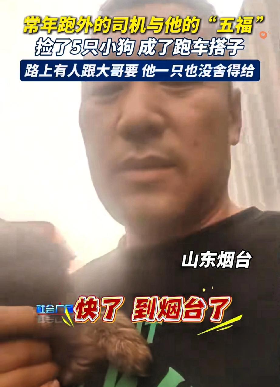 谁说善良不能双向奔赴? 山东烟台货车司机路边捡到半大的流浪小狗,怕它们被车碾压