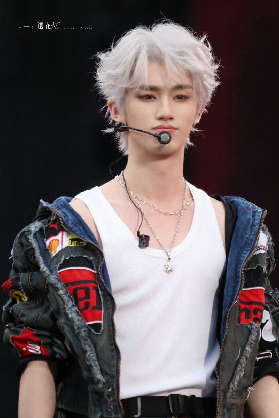 丁程鑫的白毛造型自带亮眼气场,浅色发丝在光线下泛着柔和光泽,衬得肤色愈发透亮。无论是随意散落的碎发,还是稍显利落的发型,都让这份独特的发色多了几分层次,搭配他灵动的眼神,既透着少年的鲜活,又带点不羁的酷感,每一个镜头都让人过目难忘。丁程鑫白毛时尚头排客
