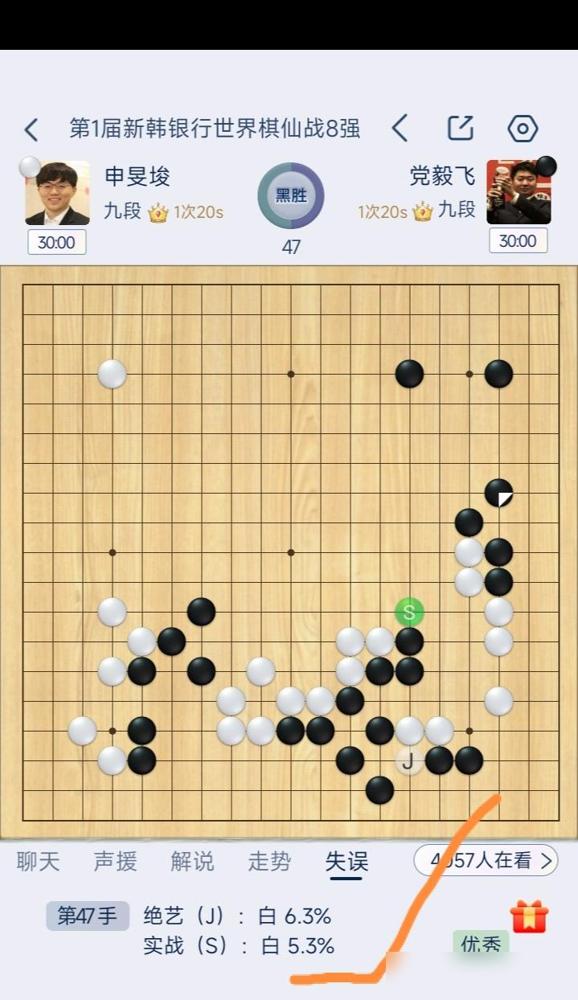 中韩围棋对决打出最解气的一战!韩国棋院为申真谞量身打造的快棋赛,本想让这位韩国第一人稳拿棋仙杯,结果不仅申真谞被王星昊斩于马下,申旻埈也被党毅飞按在地上摩擦。 这种原本以为是给自家一哥“送大礼”的局,硬生生被咱们两位棋手给搅黄了。王星昊和党毅飞在客场顶住压力,双双零封对手,直接把韩国人的如意算盘砸个精光。 特别是王星昊那一局,真的能看出中国新锐的气势。他在布局阶段就没打算退,那个黑23手的“二间低夹”下得太硬气了,愣是让号称“申工智能”的申真谞长考了两分钟都没敢正面接招。 我觉得整场最关键的转折还是那个白92手的打劫。在那种快棋读秒的极限压力下,申真谞显然是急躁了,选了个最凶但也最亏的变招,胜率直接跳水30个百分点,让王星昊瞬间掌握了90%的主动权。 更绝的是,这个劫争对王星昊来说根本不疼不痒,对他来说却成了生死劫。王星昊全程冷静得不像个年轻人,黑205手稳稳围住中腹,那一刻基本上就宣告了申真谞的提前出局。 相比之下,党毅飞那边赢申旻埈简直是另一种风格的压制。申旻埈整场比赛的状态都有点“梦游”,从白32手开始连续犯错,我感觉他当时整个人都已经吓懵了。 这种连环失误导致他的胜率直接跌破10%,党毅飞这种老练的选手根本不会给对手喘息的机会,逮住下边那两块孤棋就是一通输出,短短几十手就把比赛变成了单方面的技术演练。 讲真,客场作战本来就难,更别说是面对对方精心准备的赛制,结果咱们这两位硬是靠实力让韩国围棋的一哥二哥同时吃瘪,这种场面确实难得一见。 现在的局面很明朗了,既然都是自家兄弟,那冠军注定是咱们的了。大家觉得决赛这波,是王星昊这位“后浪”能冲顶,还是党毅飞这位老将更稳健?