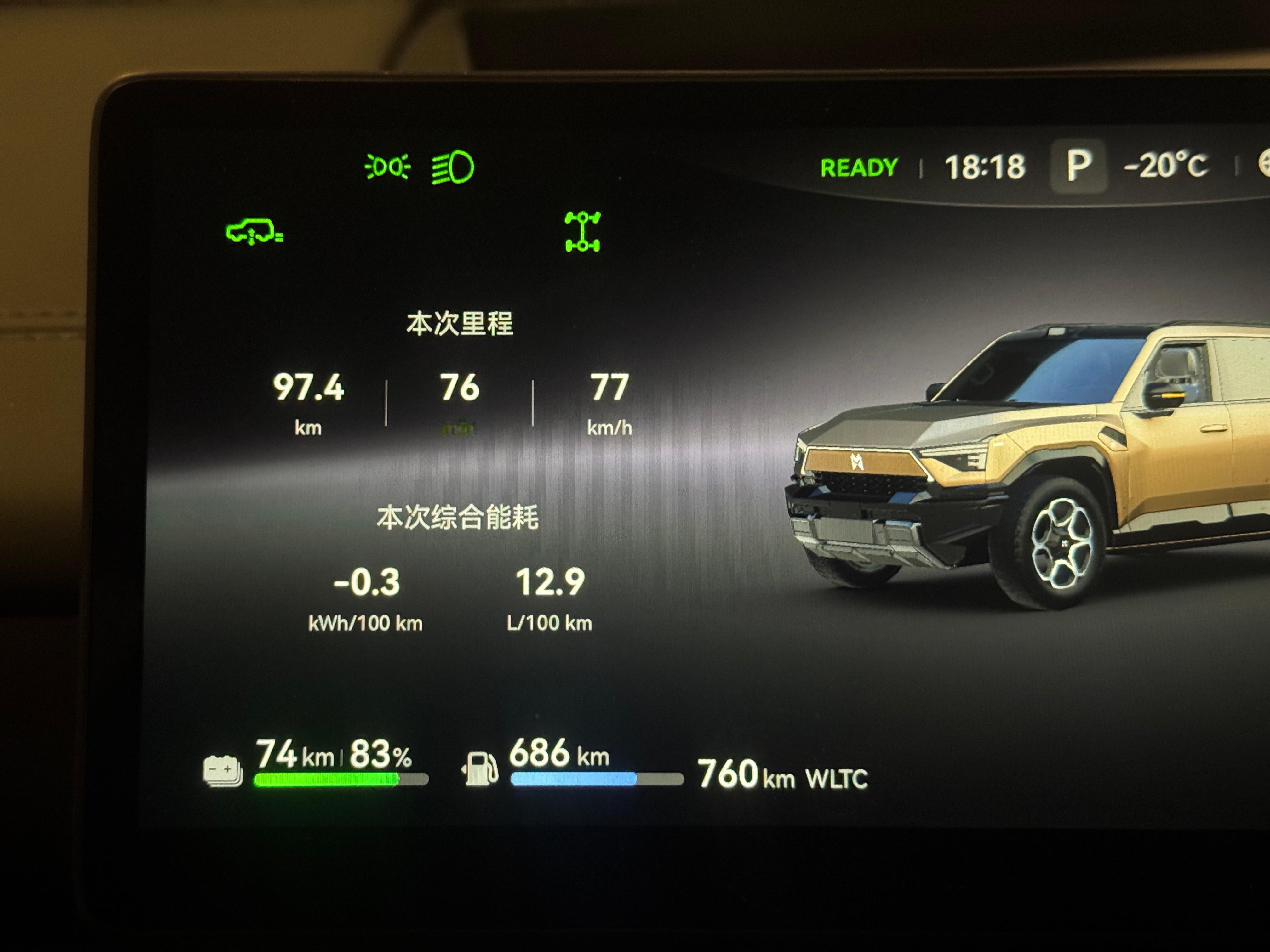 零下二十度+空调音响方向盘座椅加热+强制保电这个能耗还算可以叭?佑酱的猛士m81