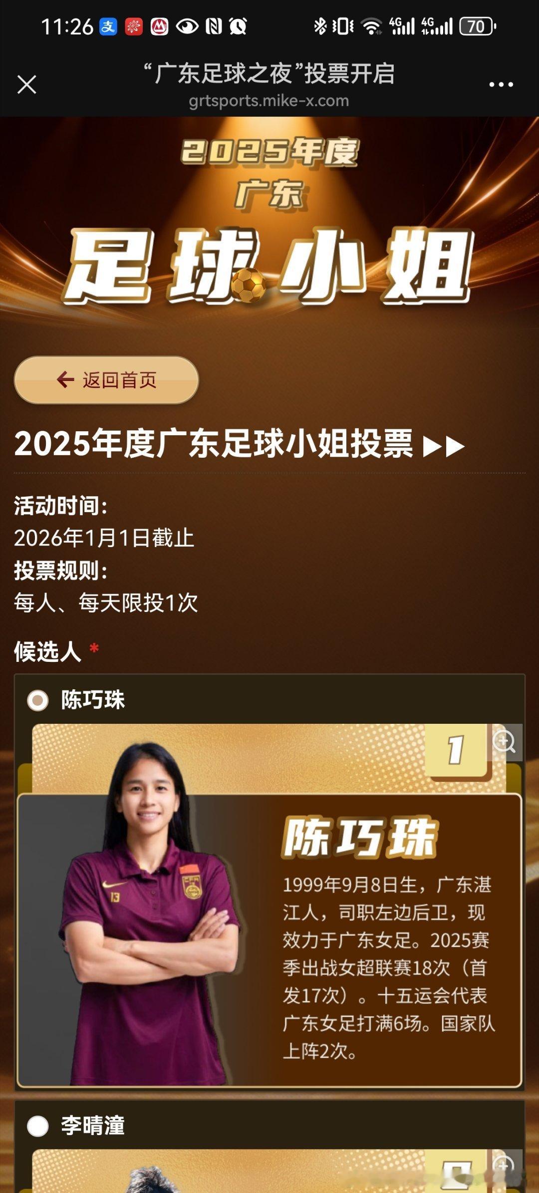 广东足球先生投侯煜足球小姐投陈巧珠,投票投票广东足球
