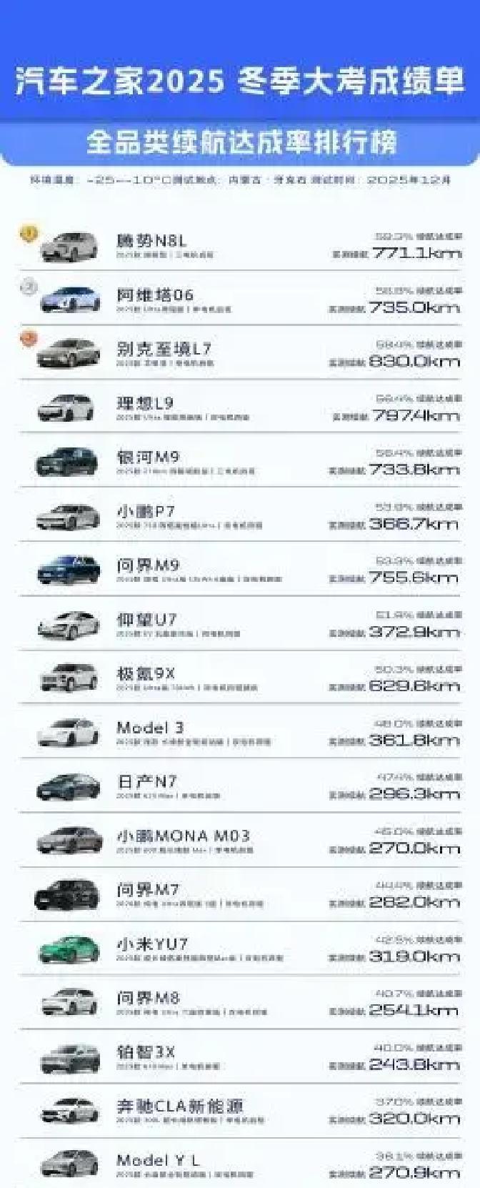 最近,汽车之家公布了2025年冬季测试结果,别克至境L7这款热销增程轿车在零下25度的严寒里大放异彩,各项关键数据直冲前排,让人眼前一亮。想想北方冬天开车,电池掉电、车内冷飕飕,这些痛点总让人犹豫,这次测试直击要害,帮大家看清实打实的表现。 先说续航,这可是冬季买车的硬指标。别克至境L7的续航达成率高达58.45%,在50款新能源车里排第三,比同类增程轿车平均水平高出一截。满油满电跑下来,实测830公里,每公里成本才0.61元,油电结合省钱又靠谱。根据最新行业报告,2024年新能源车冬季续航平均缩水30%以上,但这款车稳稳守住底线,证明增程技术在寒冷天气下真能顶住压力。 再看制热,北方人冬天最怕车里慢热。测试中,它15分钟就把温度拉到36.9度,前两分钟就升了22.9度,在混动轿车里稳坐头把交椅。这不光是数字,实际开车时,快速暖车直接提升舒适度,避免了长途冻手冻脚的尴尬。结合全网数据,类似车型制热效率多在20度徘徊,它这表现领先明显。 在我别克至境L7不愧是销量王者,这次冬测数据戳中了消费者心窝。冬天用车,稳定性和经济性才是王道,它用事实证明增程车能扛住北方严冬,不再是“娇气”的代名词。买车时,多比比这些实测值,选对一款,冬天开车就安心多了。实际效果还得看个人习惯和路况,但这份成绩单绝对值得参考