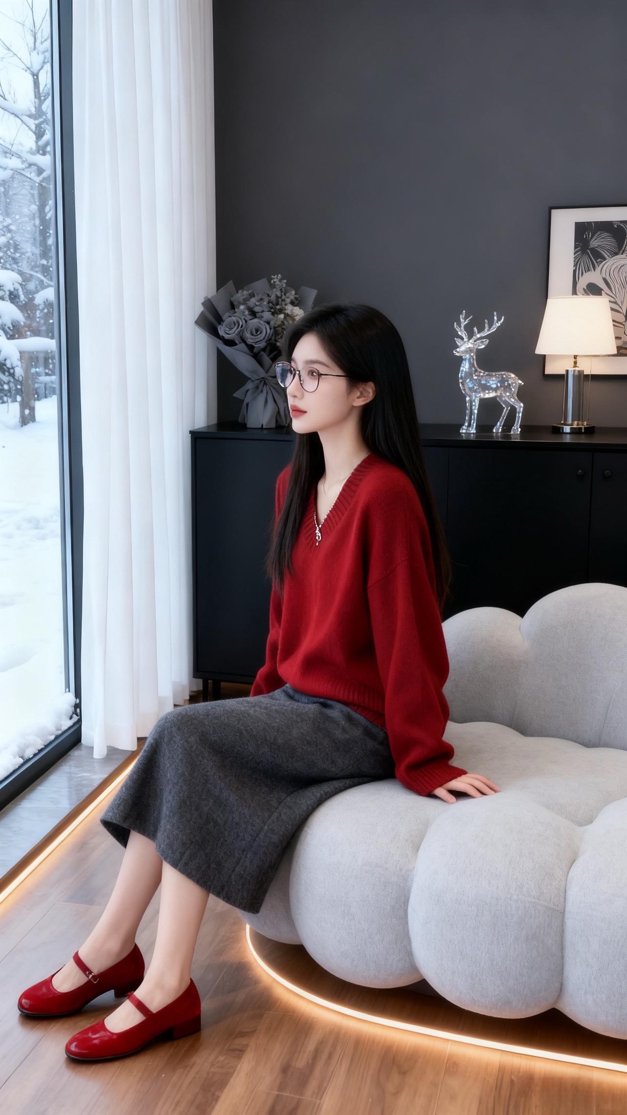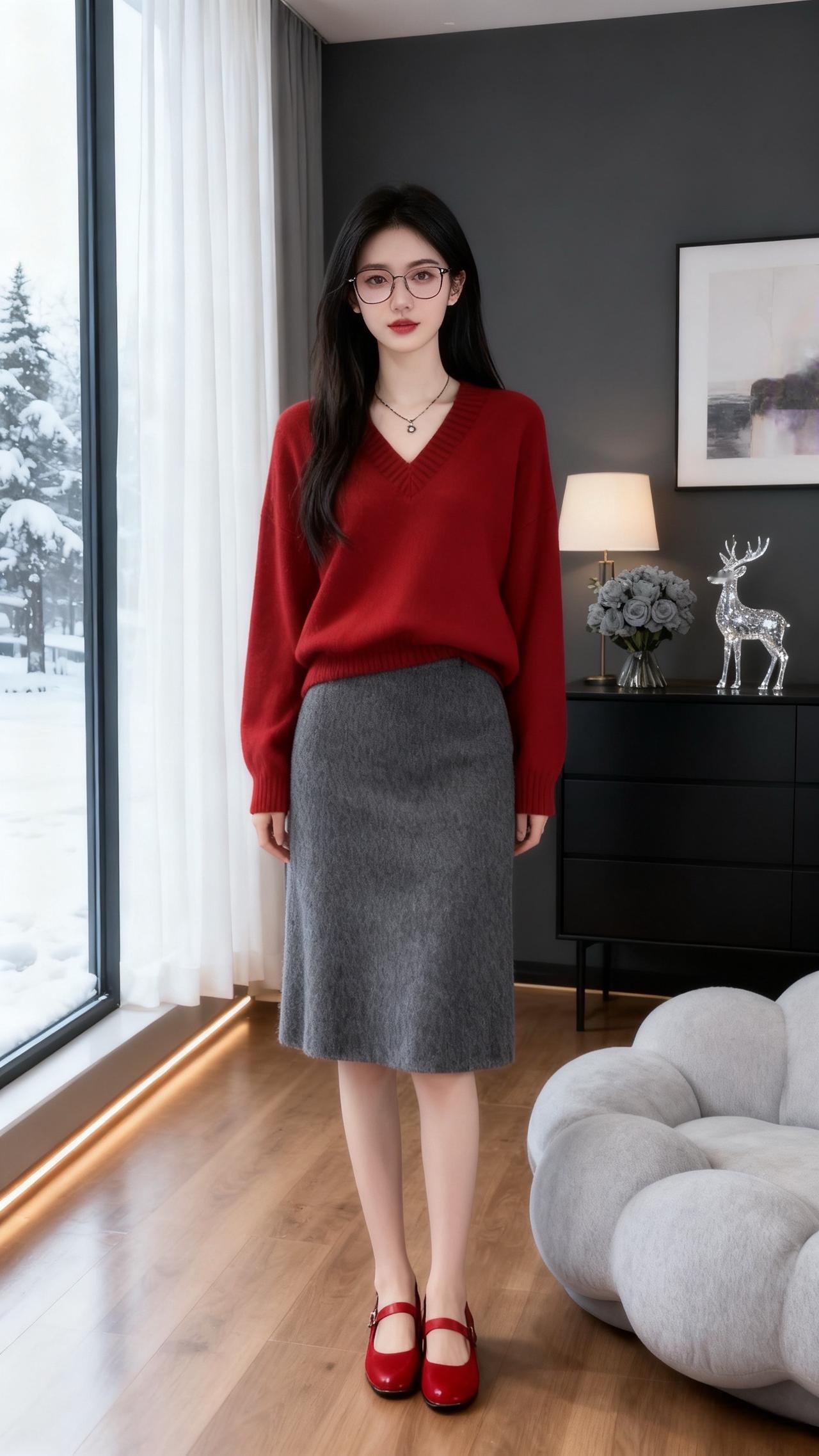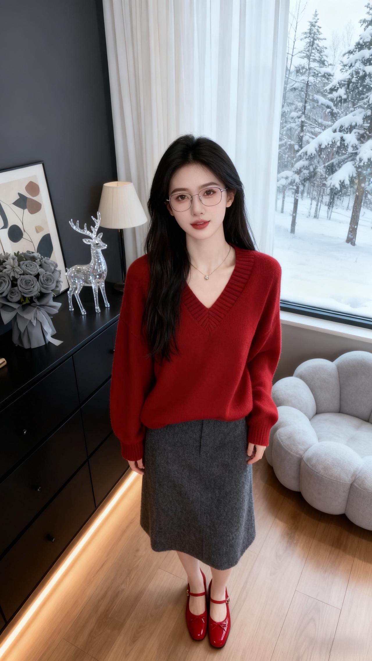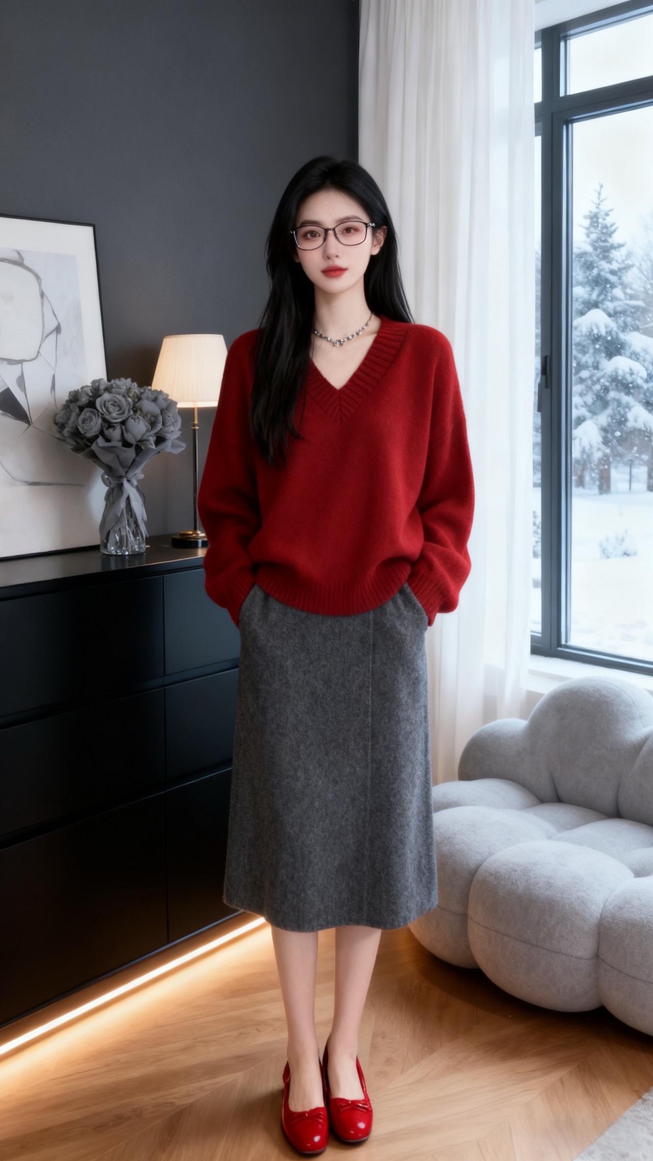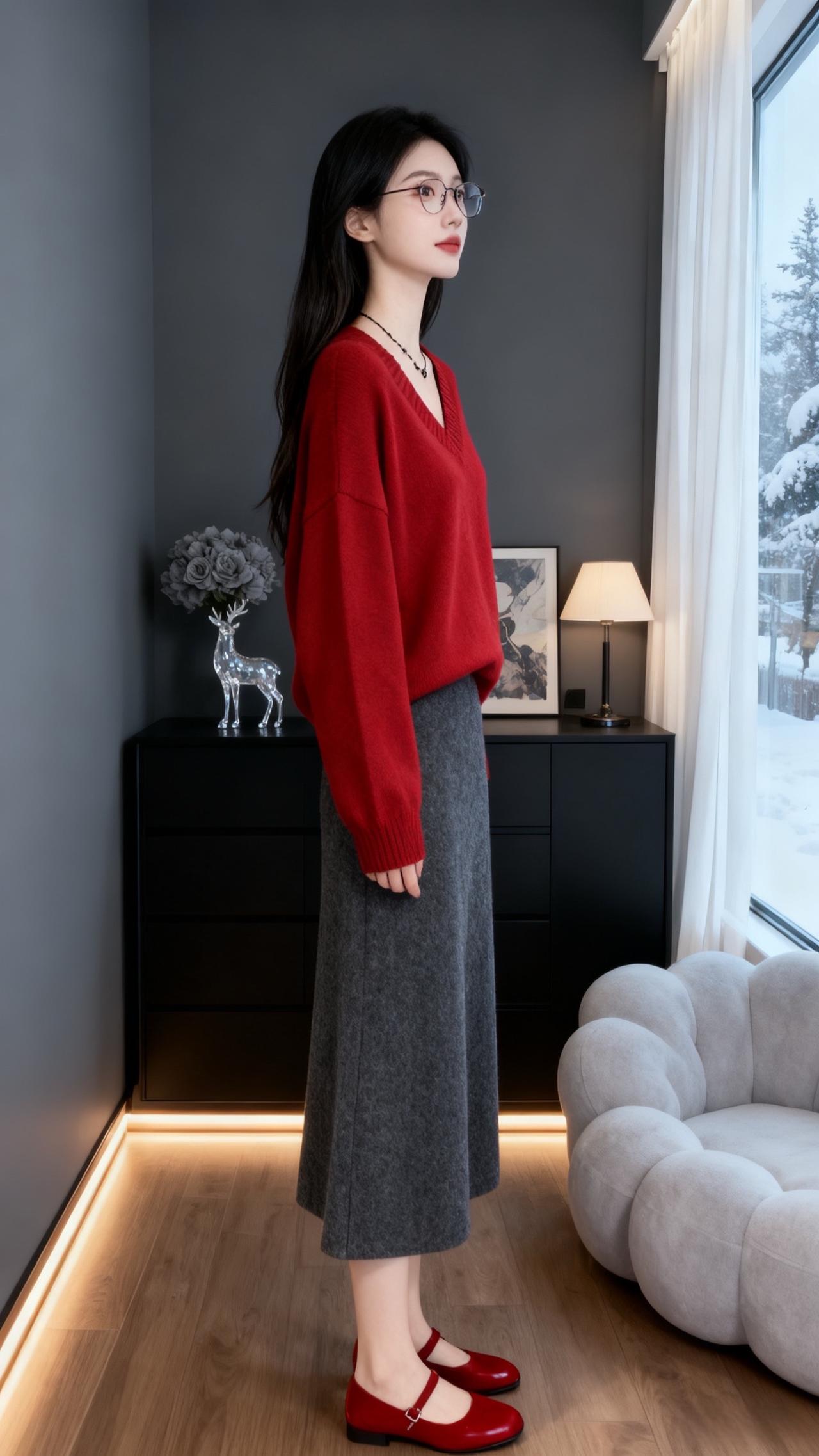 温柔穿搭 过年穿什么 小个子穿搭 女生红色针织衫 复古穿搭