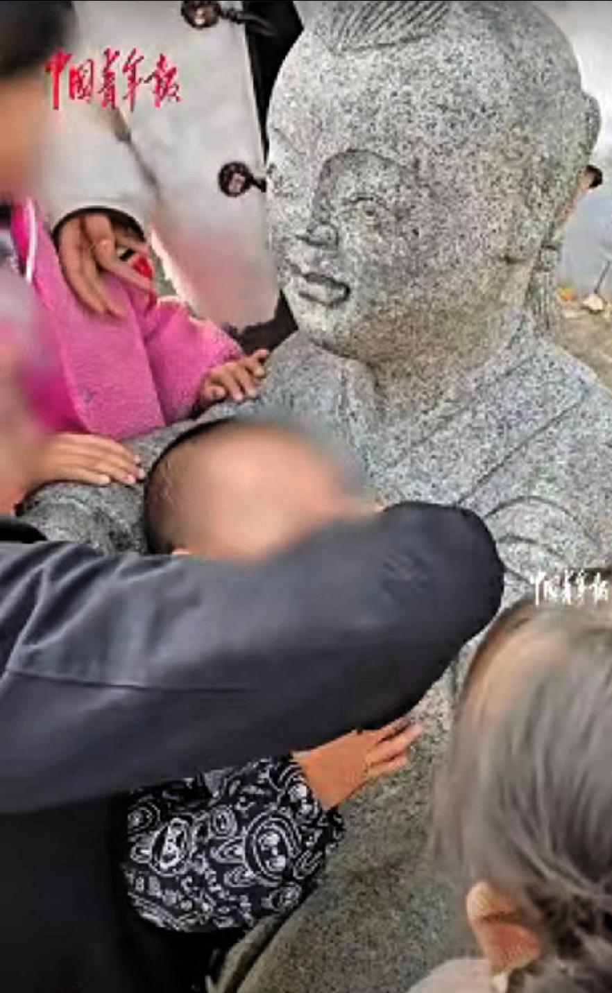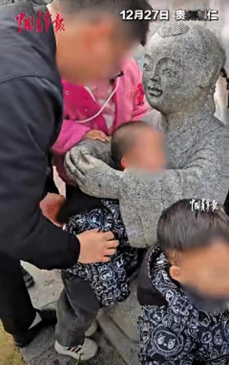 人怎么能闯这么大祸!近日贵州铜仁,爸妈带三岁的男孩去公园游玩,玩的兴起就没顾得上管孩子 直到听见孩子的尖叫声才回过神,发现孩子的头卡在了童子雕像手臂和身体的缝隙里,动弹不得。 孩子爸爸赶紧上前帮忙,先是试着轻轻挪动孩子的头,想把他从缝隙里拉出来,试了几次都没成功。 之后又让孩子蹲下,想从下方把孩子挪出来,可孩子一被触碰就喊疼,只能暂时停下。周围的游客看到后,也纷纷围过来出主意,有人提议联系公园工作人员,有人建议按孩子进去的姿势慢慢退出来。 孩子爸爸冷静下来观察,发现雕像的缝隙越往下空间越大,他立刻调整方法,让孩子继续慢慢蹲下,一手护住孩子的头部避免磕碰,一手托住孩子的身体,慢慢斜着往下挪动。没一会儿,孩子就顺利被救了出来,身上没有受伤,在场的人都松了口气。 这事儿看着有惊无险,实则给所有家长提了个醒。三岁孩子好奇心强,对身边的事物都想探索,根本没有危险意识,这时候家长的监护责任一点都不能松懈。别抱着“就一会儿没事”的侥幸心理,很多意外的发生,往往就是源于这短暂的疏忽。