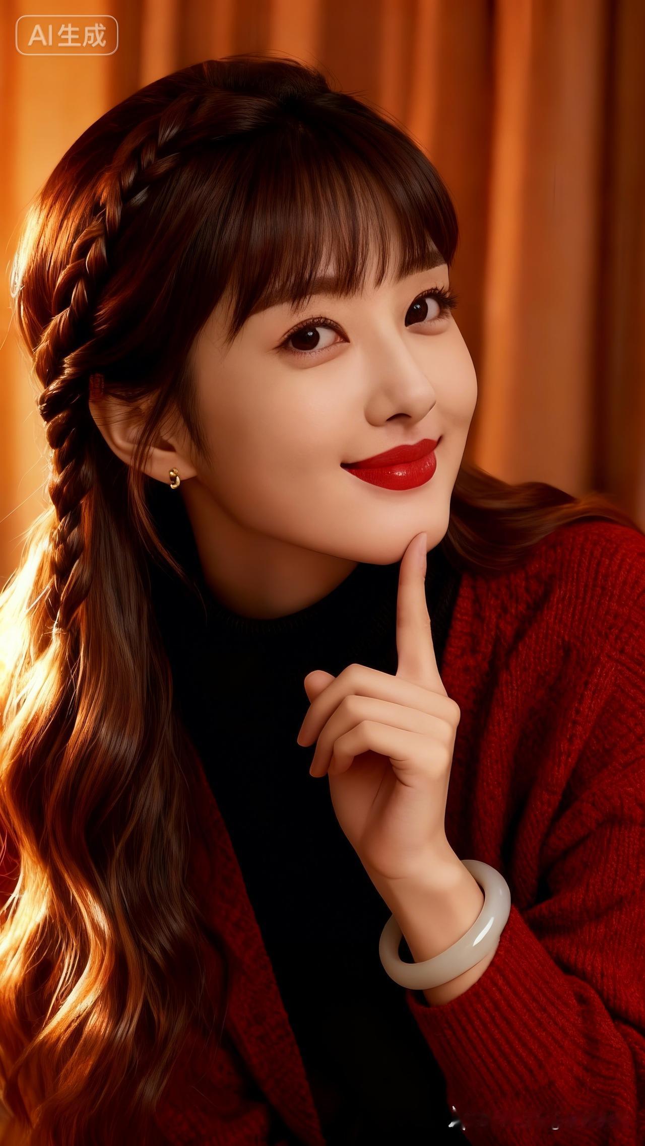 甜美红唇,优雅发辫,时尚穿搭,自信微笑!