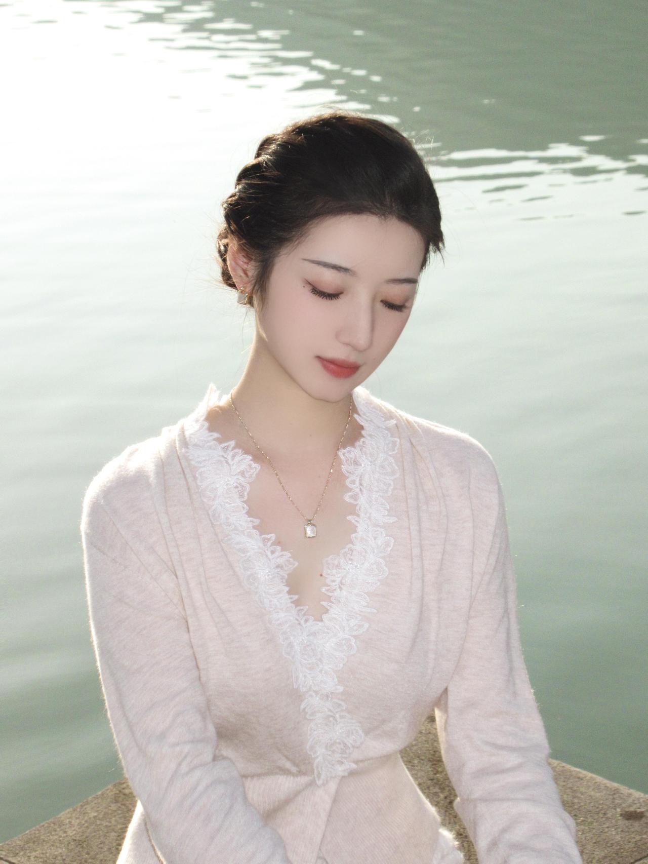 海边少女,温柔时光,轻纱飘逸,静谧如画。