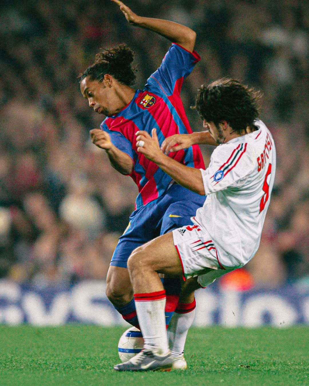 2004年欧冠小组赛巴塞罗那vsAC米兰一夜一瞬,一笑倾城——罗纳尔迪尼奥正绽