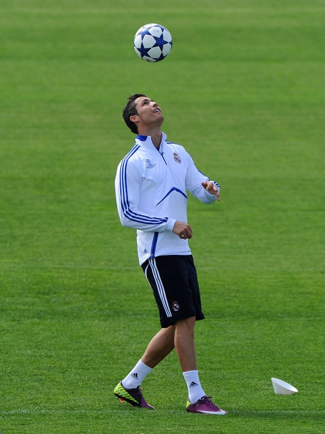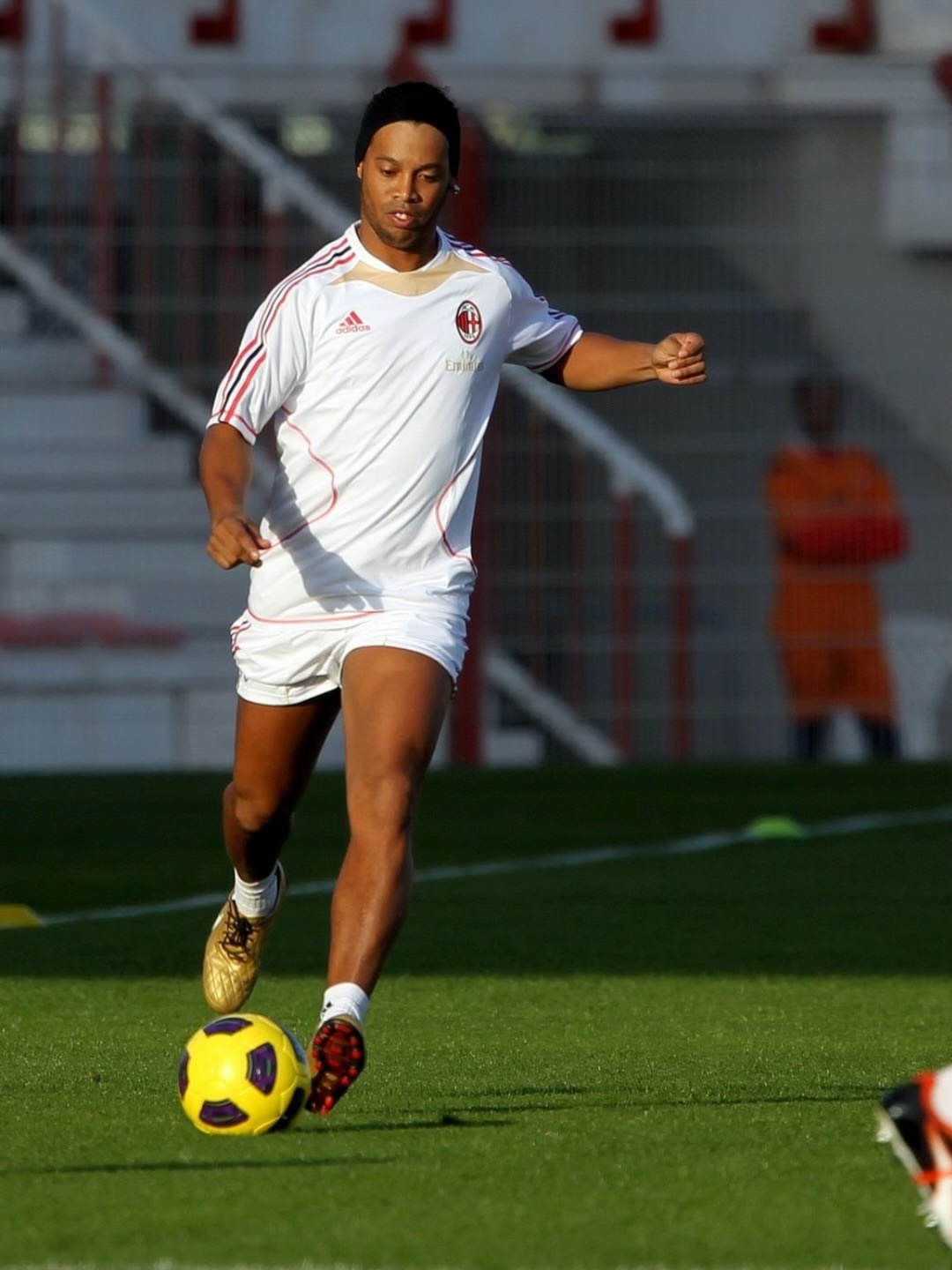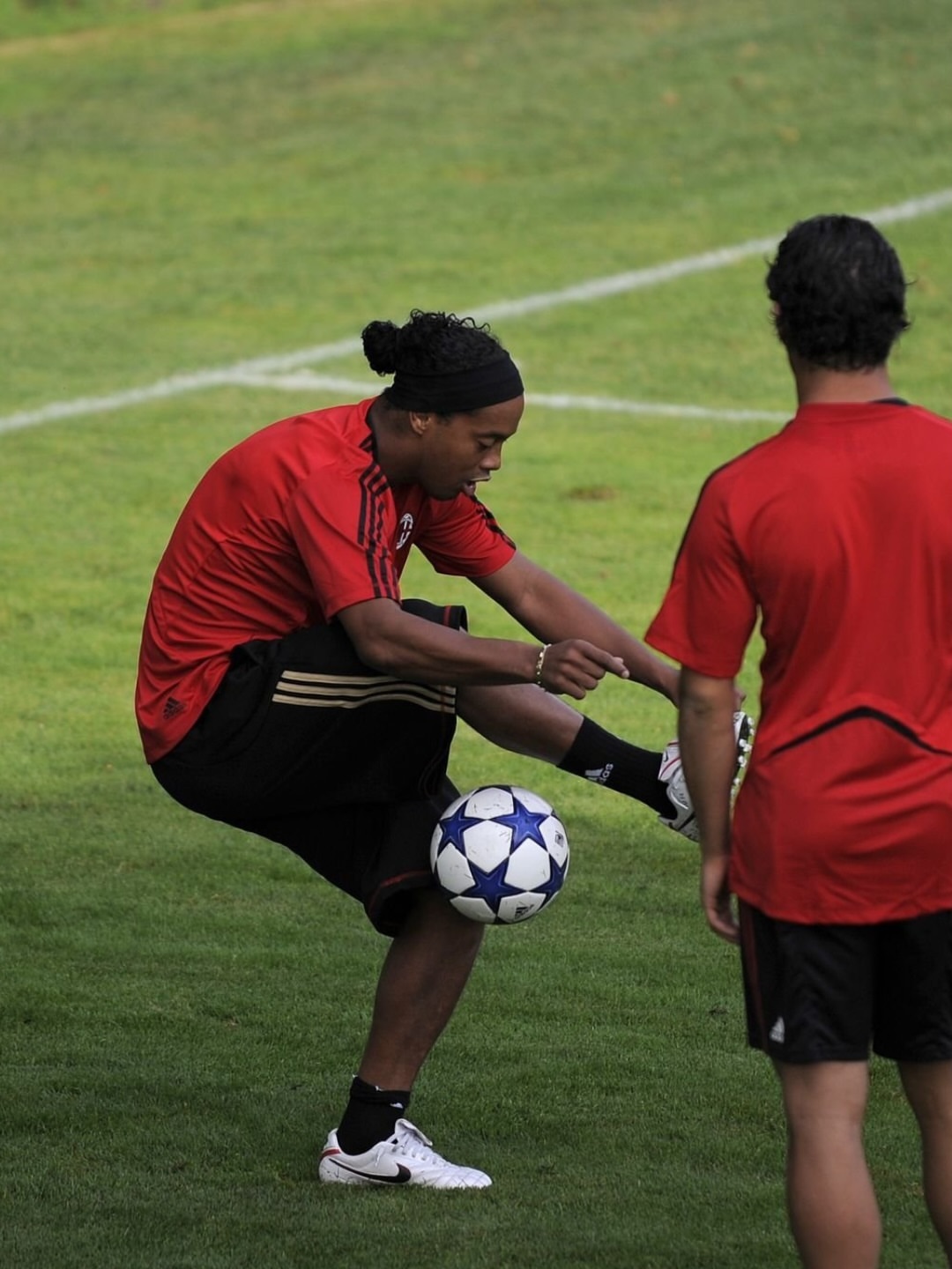 2010/11赛季 阿维罗·克里斯蒂亚诺·罗纳尔多与罗纳尔迪尼奥同框训练照足球c罗