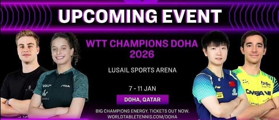 2026年 WTT冠军赛 多哈站🏓✨1月7日~1月11日卡塔尔 多哈 卢赛尔体育馆🇨🇳中国队参赛名单男单:林诗栋、梁靖崑、向鹏、陈垣宇女单:孙颖莎、王曼昱、陈幸同、蒯曼、王艺迪、陈熠