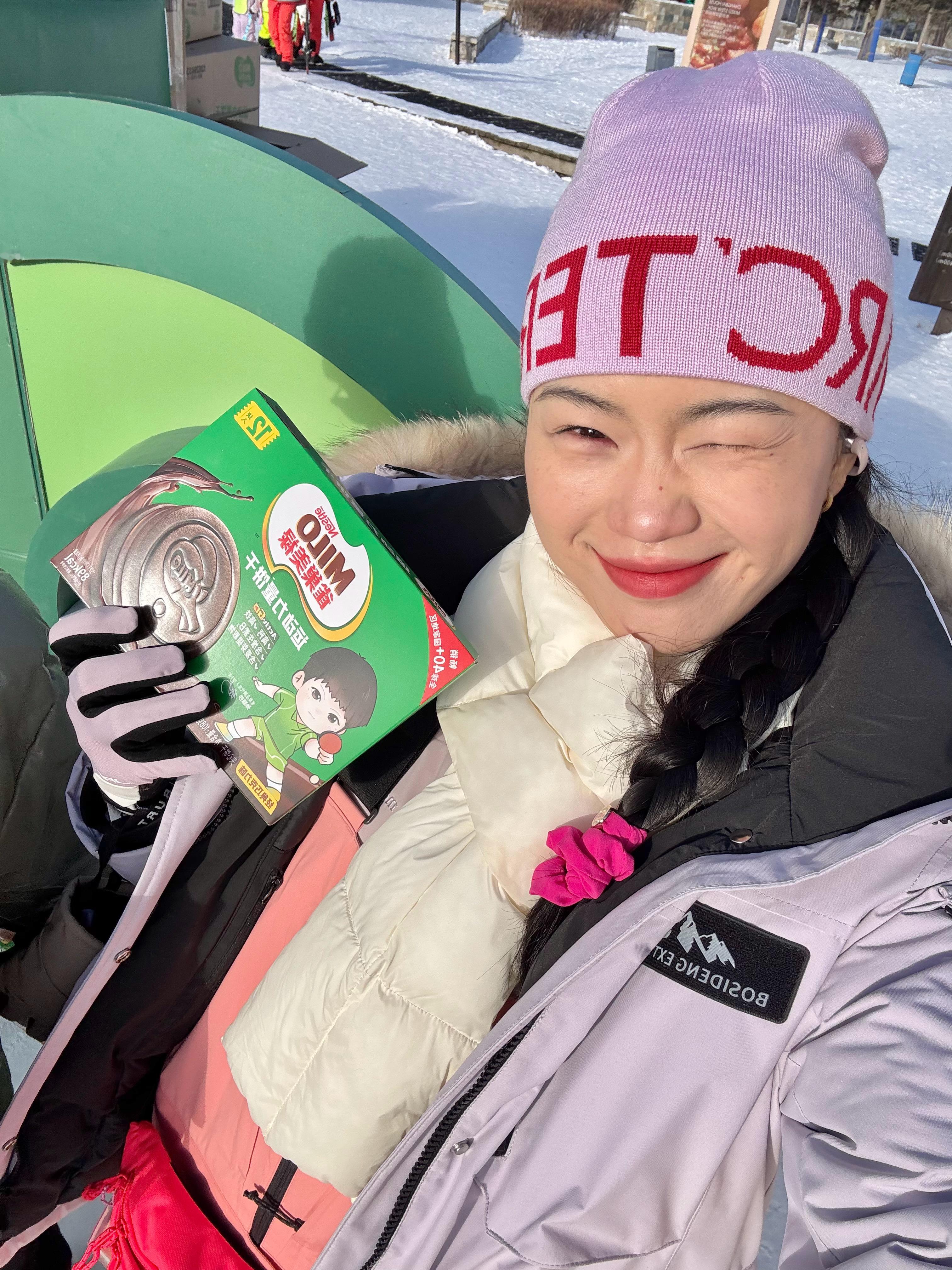 这两天爽滑到腿都软得打晃🏂 加上雪场的风也太刺骨了,脸和手都冻得通红🥶正大喘气呢朋友递过来一块带着余温雀巢美禄饼干,麦芽香混着巧克力味瞬间填满嘴巴,香甜和暖意一起涌上来🥰 被掏空的能量又一点点回来了,这才是极地滑雪日的正确打开方式~🍫🫡能量高高上板开滑微博雪地节