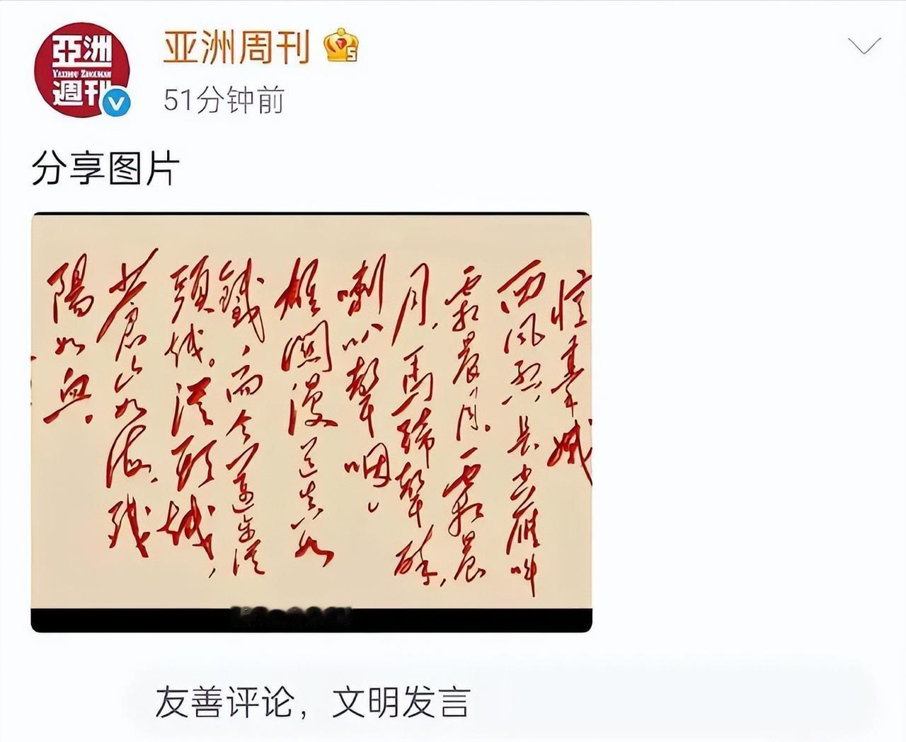 《亚洲周刊》把之前所有关于南京博物院的文章都删了,现在只留了一篇《忆秦娥·娄山关》。 “西风烈,长空雁叫霜晨月……雄关漫道真如铁,而今迈步从头越。” 这词大家都熟,讲的正是在艰难逆境中咬牙向前、重新出发的精神。 在这个时间点,独独留下这一首,意思其实挺明显的——这本身就已经是一种表态了。
