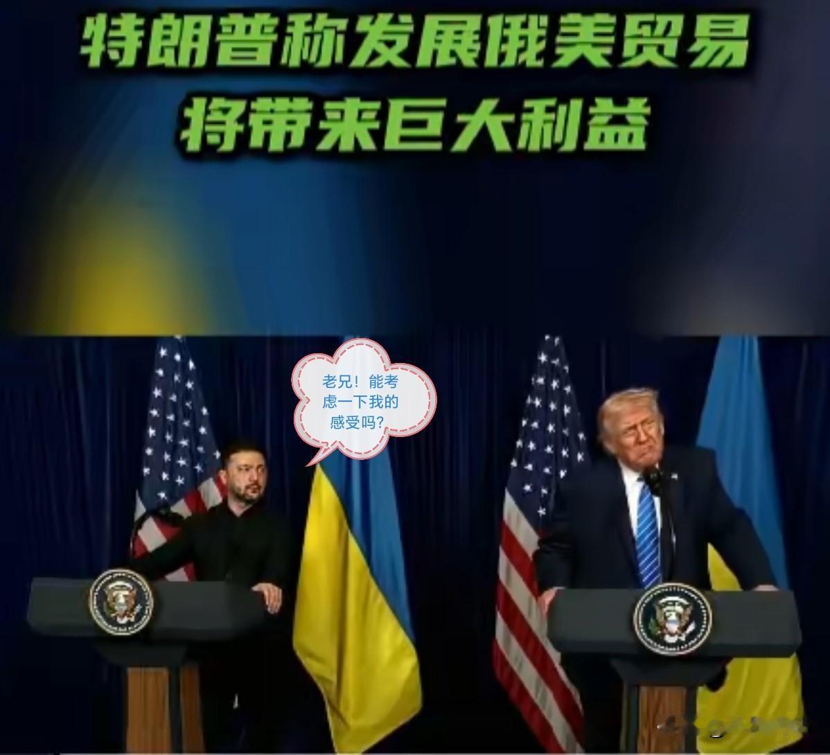 我仿佛看到了泽连斯基“愤怒的小眼神”![偷笑] 据今日俄罗斯RT报道,当地时间12月28日,美国总统特朗普在与乌克兰总统泽连斯基举行的新闻发布会上表示,发展俄美经贸关系将带来巨大利益。 特朗普表示:与俄罗斯进行贸易本可创造巨大效益。他们拥有广袤的土地、丰富的矿产资源及其他优势。而我们拥有他们亟需的东西。 小民闲话:特朗普在这种场合大谈俄美经贸关系,这是对泽连斯基的愚弄和无视,也在暗示泽连斯基在俄乌之间,美国会选择能获得更大利益的俄罗斯!