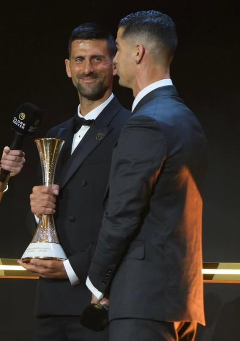 [ 正装 德约科维奇 | 首届环球体育奖 ]虽然不是正装控,但每次看德约科维奇穿正装,都觉得很有感觉。德约科维奇不踢足球也拿了个什么足球届的跨届奖,还是C罗给颁发的。闹来已经超越ATP过家家式的玩法了。C罗为德约科维奇颁奖我的年度赛场记忆体育大赏