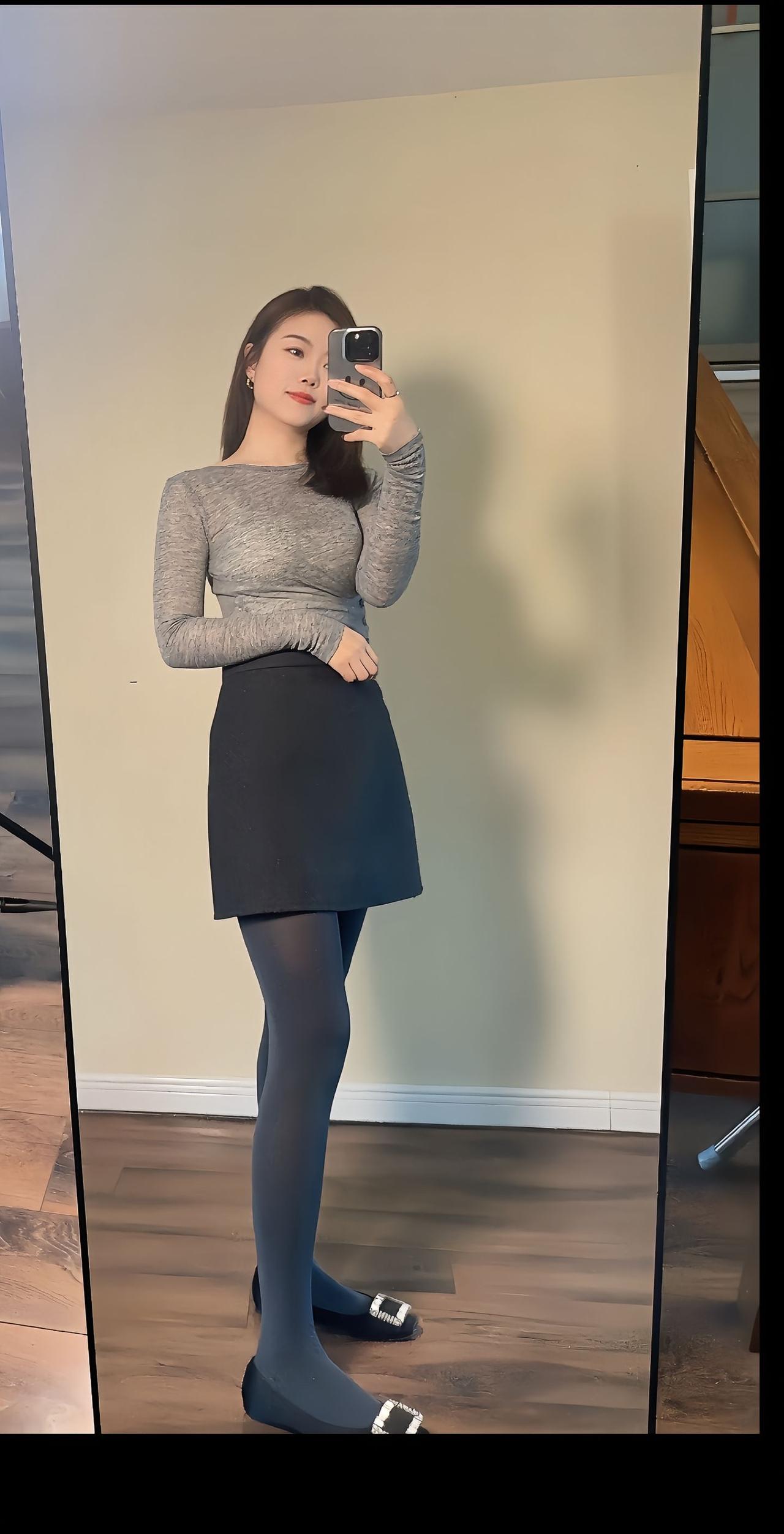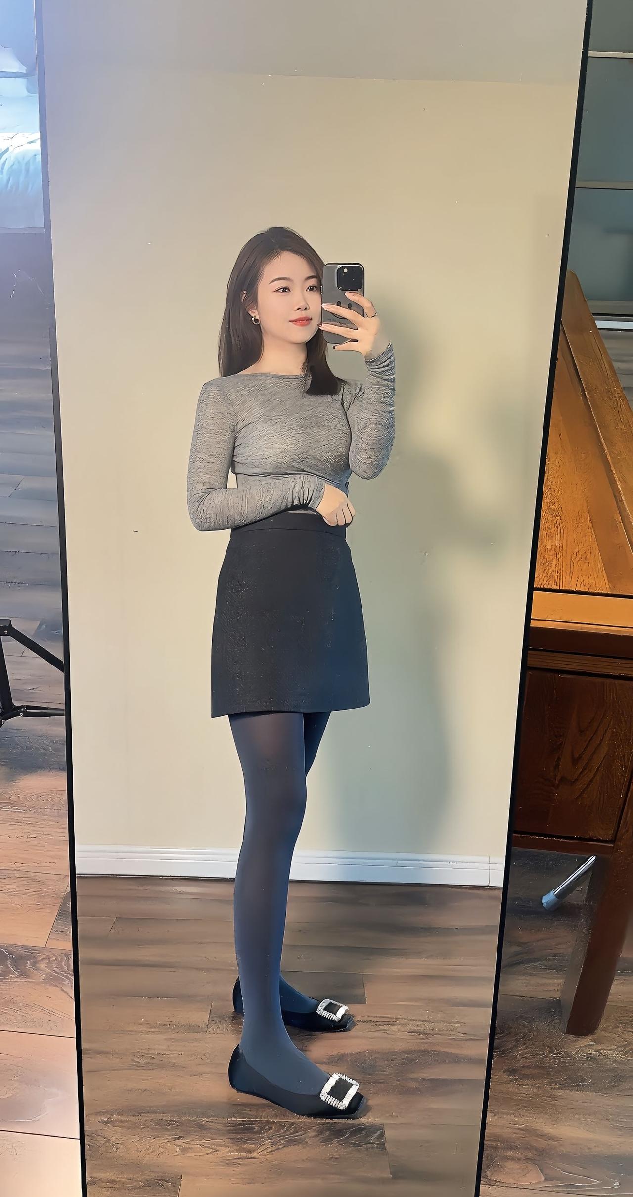 优雅气质穿搭,灰色毛衣+黑色短裙,简约时尚!