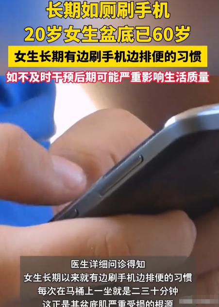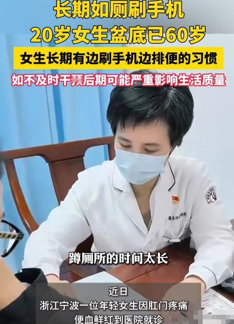 浙江宁波,一名20岁女生排便时总感觉肛门疼痛,本以为是得了痔疮,可去了医院检查,却被告知并没有痔疮,刚想松一口气,医生又告知:盆底功能下降,甚至不如很多老年人,这让人有点意外,年轻人怎么可能出现这种状况?医生仔细问诊才发现,这和她平时上厕所玩手机的习惯脱不了关系 上厕所带手机,刷着视频或新闻打发时间,这事估计很多人都干过。 可谁能想到,这个看似平常的习惯,竟能让年轻人的身体器官提前“老化”,宁波一位20岁的女生小玲(化名),就因为这个习惯栽了跟头。 前段时间,小玲总觉得排便时肛门疼,还伴有鲜红的便血,她心里咯噔一下,心想肯定是长痔疮了,毕竟现在年轻人久坐不动,得痔疮的不在少数。 揣着忐忑的心情,她去了医院肛肠科就诊,本以为就是开点药膏就能解决的小事。 检查结果出来,小玲先松了口气,医生说她并没有内外痔,肛管结构也没问题。 可还没等她完全放下心,医生的下一句话就让她彻底懵了:“你的盆底功能评分只有45.9分,连正常范围都没到,甚至不如很多60岁以上的老年人。” 20岁的年纪,怎么会有老年人都不如的盆底功能? 小玲满脑子都是问号,医生仔细追问了她的日常习惯,答案很快就浮出水面,原来小玲长期上厕所都离不开手机,每次一坐就是二三十分钟,原本几分钟就能解决的事,硬生生被拖成了“长时间修行”。 说白了,咱们的盆底肌就像一张“吊床”,稳稳支撑着盆腔里的器官。 医生解释说,长时间蹲坐在马桶上,这张“吊床”就会持续承受压力,时间久了就会出现慢性损伤,弹性越来越差,就像被一直拉伸的皮筋,总有一天会失去弹力。 盆底肌受损后,连锁反应就来了,肛门括约肌会跟着变得松弛,肛门关不紧,肠液就容易外渗,反复刺激肛周皮肤。 时间一长,皮肤质地变脆、延展性下降,排便时稍微用力,肛管皮肤就容易破裂,这就是小玲肛门疼痛、便血的真正原因。 更让人担心的是,医生说现在像小玲这样的年轻患者越来越多了,如果早期不及时干预,后期可能会出现肛门潮湿、控便能力下降的问题,严重的甚至会出现稀便失禁,直接影响生活质量。 目前小玲已经开始接受中药坐浴、外用药膏结合盆底肌康复的系统治疗,但医生特别强调,要是不改掉长时间如厕的习惯,再怎么治疗都是事倍功半。 可能很多人都没意识到,上厕所玩手机带来的危害远不止这些,有数据显示,几乎90%的人如厕时都会玩手机,时间常超过15分钟。 而且除了损伤盆底肌,蹲坑时间过长还会导致直肠静脉曲张淤血,诱发痔疮;注意力被手机吸引,还会分散排便注意力,导致便意迟缓,反而引发便秘。 其实保护盆底肌没那么复杂,关键就是养成好习惯,医生建议,如厕时最好把手机放在外面,专心排便,时间控制在3-5分钟内最合适。 平时没事的时候,还能做做提肛运动,早中晚各收缩肛门100次,帮盆底肌“练一练力量”,延缓功能退化。 现在很多年轻人都觉得自己身体好,对一些小习惯不以为然。 但小玲的案例提醒我们,健康从不会因为年轻就格外宽容,那些我们以为的“小惬意”,可能正在悄悄伤害我们的身体。 对此您有什么不同的看法,可以在评论区留言讨论!!!
